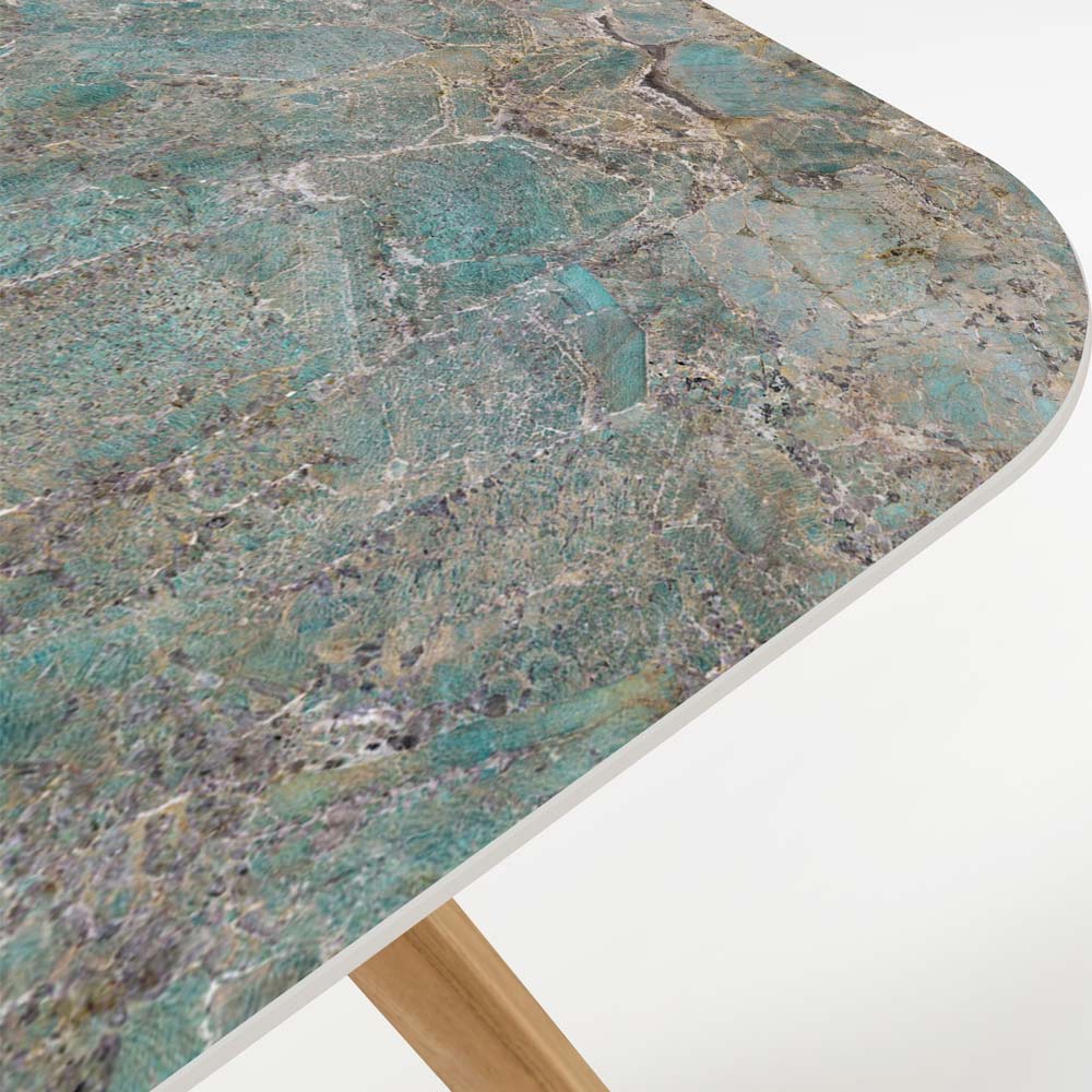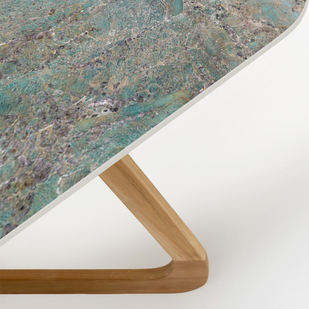 صنع بالكامل في إيطاليا. هذه الطاولة الخارجية المميزة جوهرة تصميمية حقيقية، تجمع بين أناقة الخشب وحداثة السيراميك. سطحها المصنوع من السيراميك عالي الجودة بلون أخضر عتيق خلاب، يوفر مقاومة استثنائية للعوامل الجوية وجمالاً يدوم طويلاً.