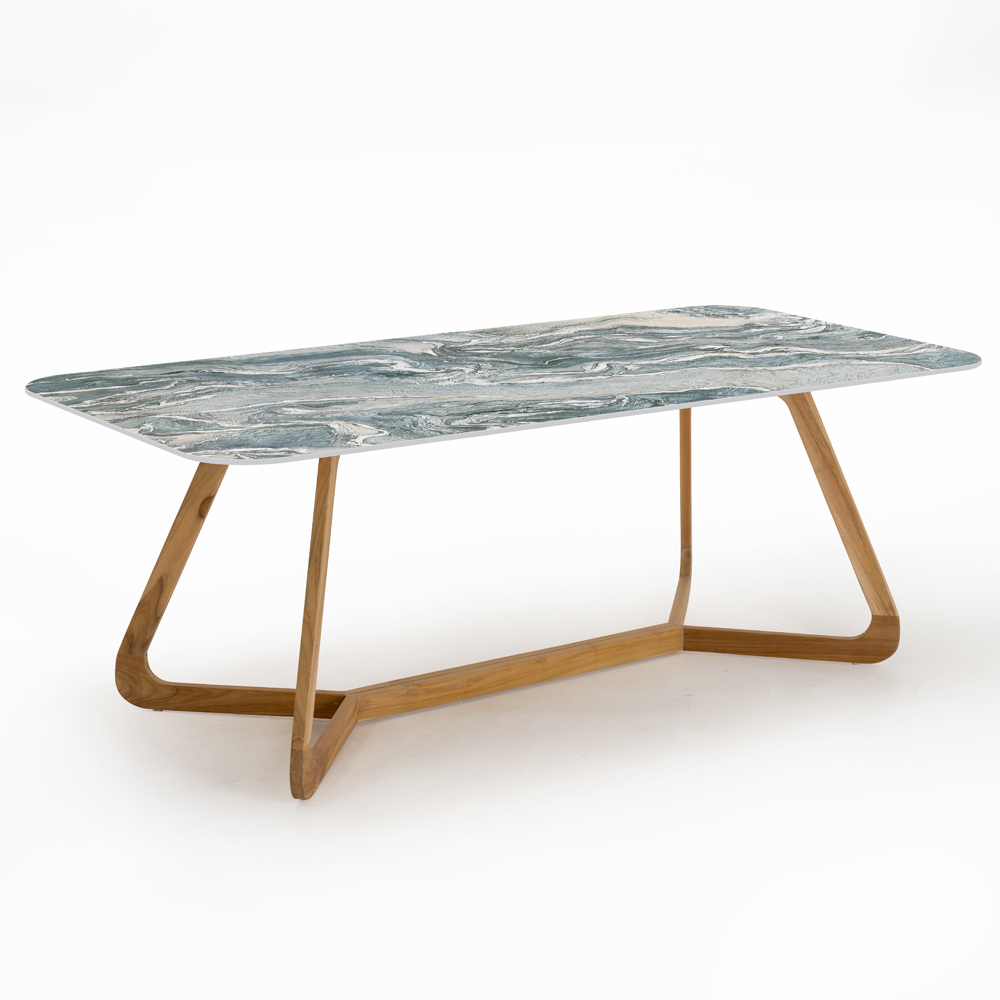 طاولة حديقة مستطيلة مصنوعة من الخشب والسيراميك، صنع في إيطاليا
