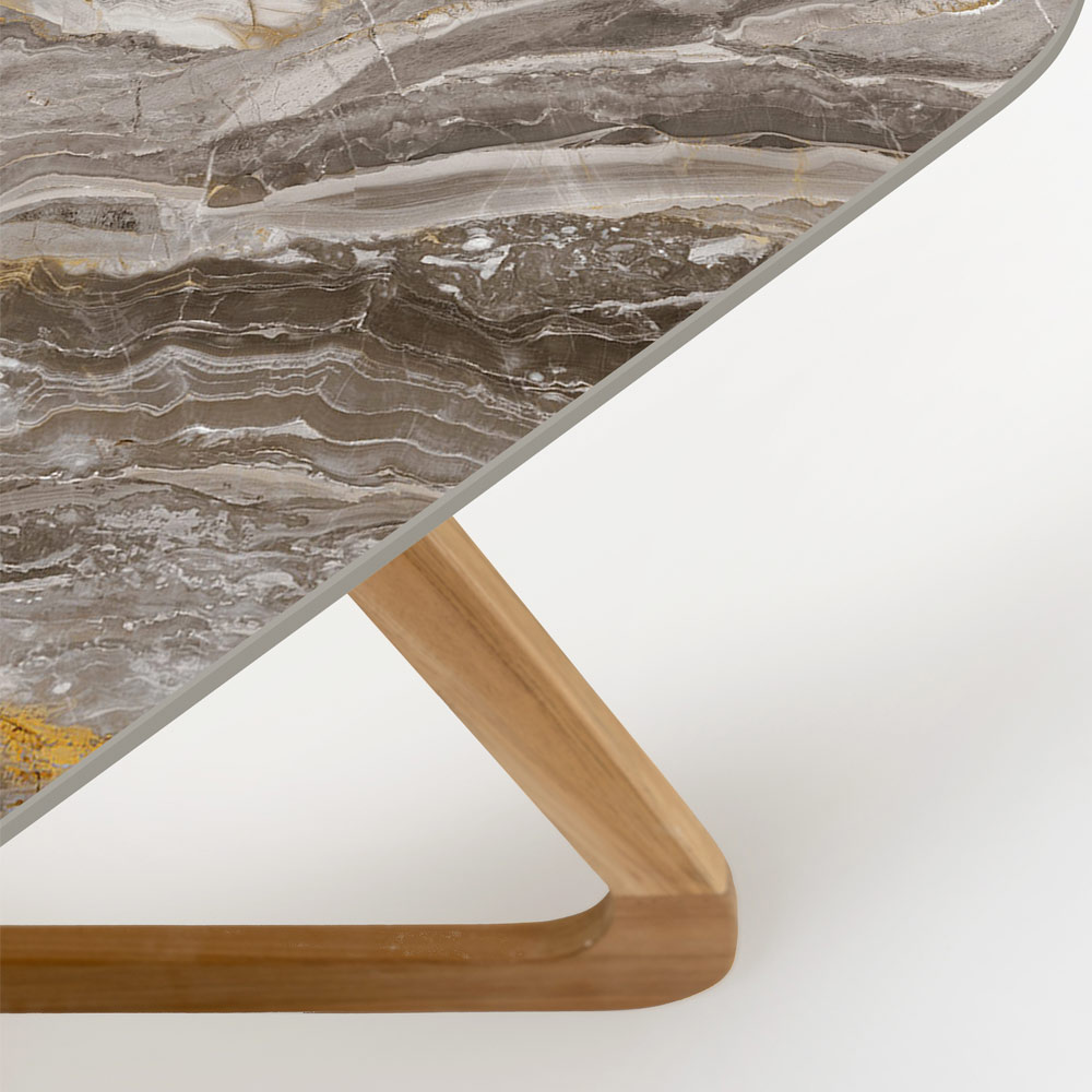 صنع بالكامل في إيطاليا. هذه الطاولة الخارجية تحفة فنية بتصميمها، تجمع بين قوة الخشب وفخامة السيراميك، مستوحاة من رخام أوروبيكو لوكس . يعكس سطحها الخزفي، بدرجاته الرمادية وعروقه الذهبية المتلألئة، جمال وتعقيد التكوينات الصخرية الطبيعية، مما يضفي لمسة من الفخامة الراقية على مساحتك الخارجية.