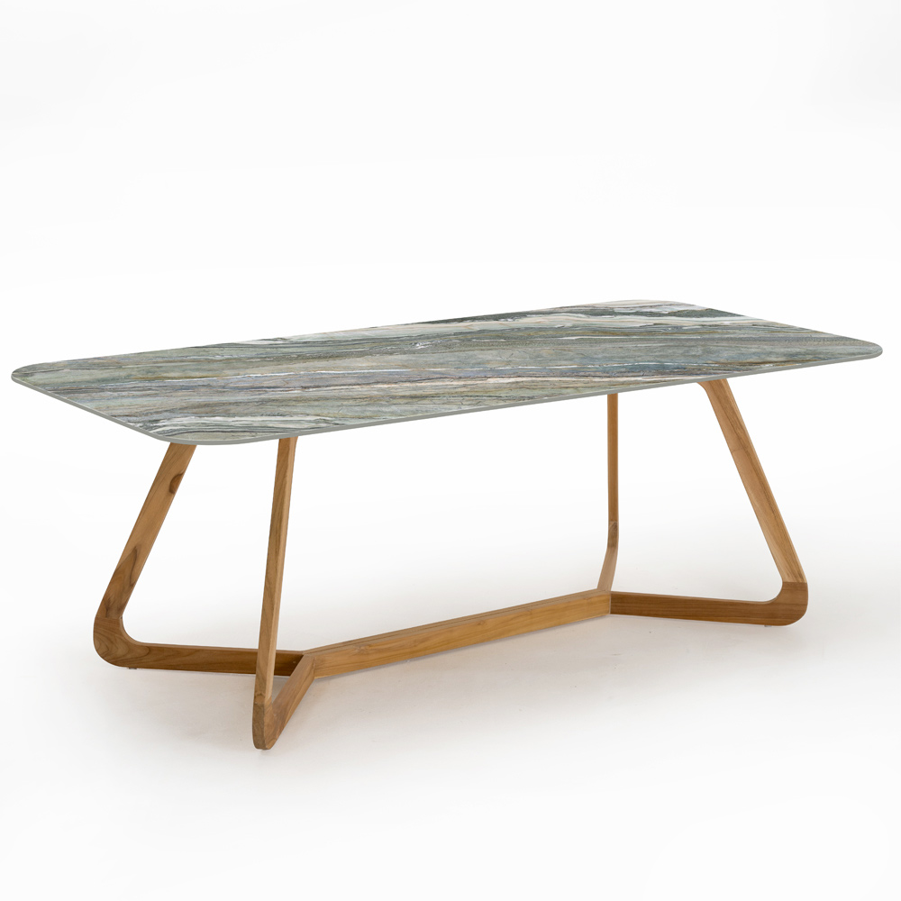 طاولة حديقة مستطيلة مصنوعة من الخشب والسيراميك، صنع في إيطاليا