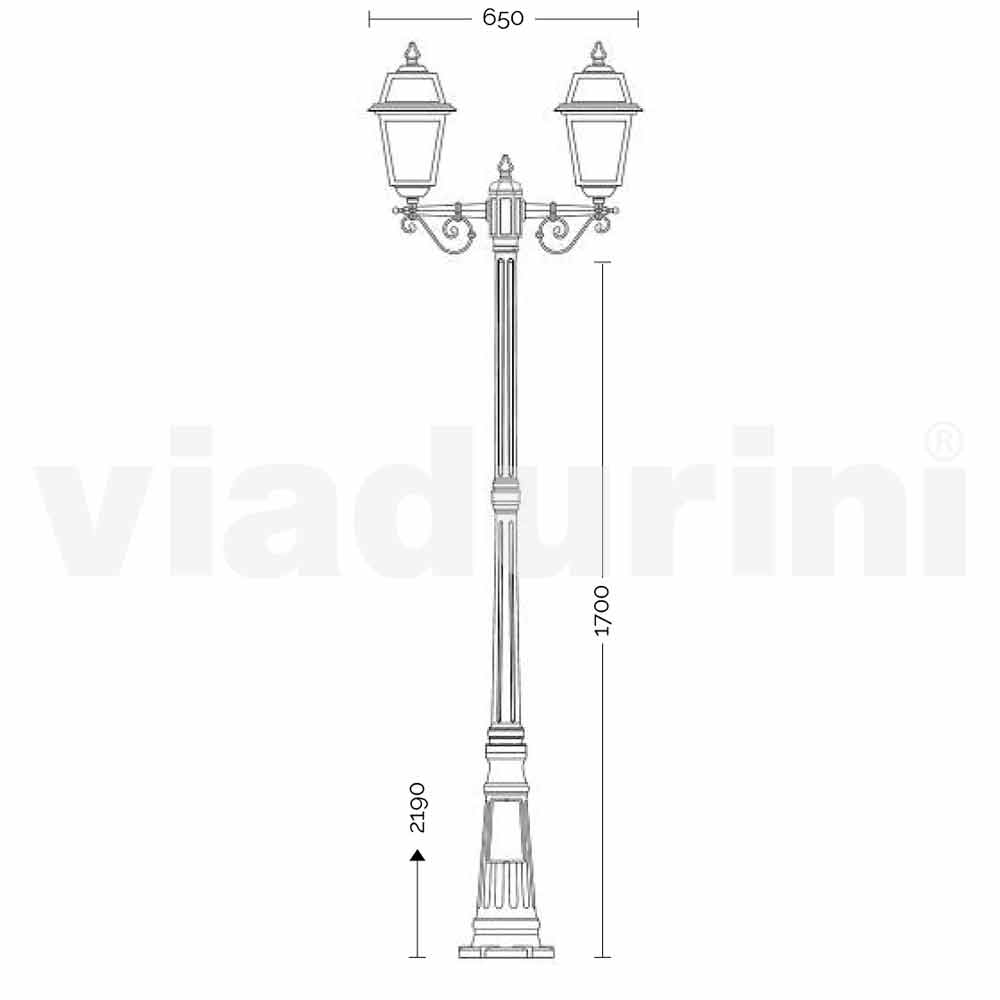 مصباح حديقة مزود بضوءين من الألومنيوم صنع في إيطاليا، كريستل كريستل هو عمود إنارة خارجي ذو ضوءين مصنوع يدويًا في إيطاليا بمواد عالية الجودة: هيكل من الألومنيوم المصبوب وناشر زجاجي متوفر: شفاف أو مصقول بالرمل.