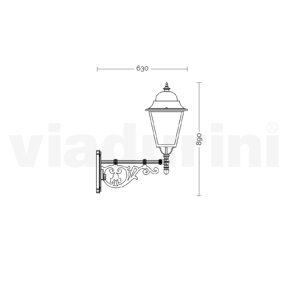مصباح جداري خارجي ، مصنوع بالكامل في إيطاليا ، بهيكل من الألومنيوم المصبوب وموزع زجاجي شفاف . يجمع هذا المصباح بين العملية والأناقة، ليُنتج قطعة أثاث فريدة من نوعها، تُضفي إضاءة عالية الجودة وعنصرًا زخرفيًا بطابع تقليدي، يُكمل أجواء المكان بفضل تصميمه الأنيق وتفاصيله الدقيقة. مثالي لتأثيث المساحات الخارجية كالحدائق والشوارع والشرفات والممرات.