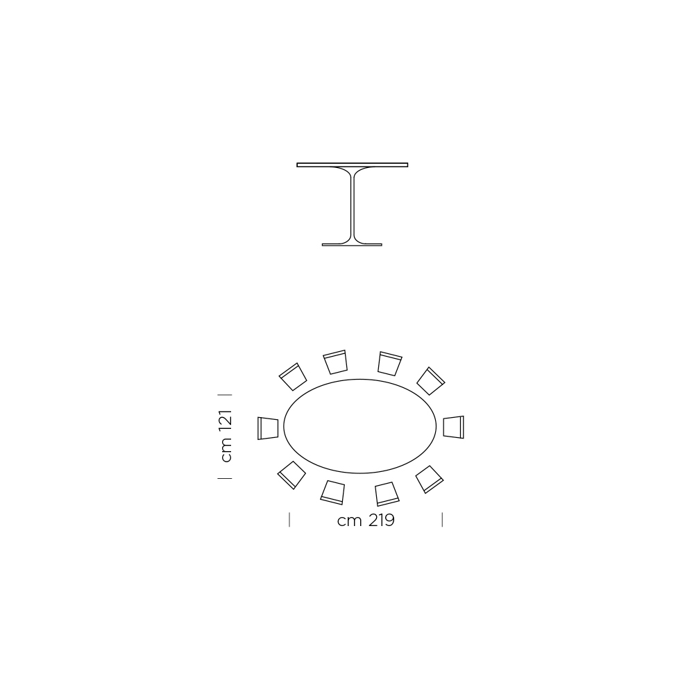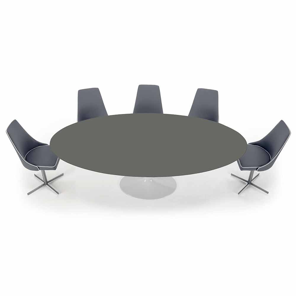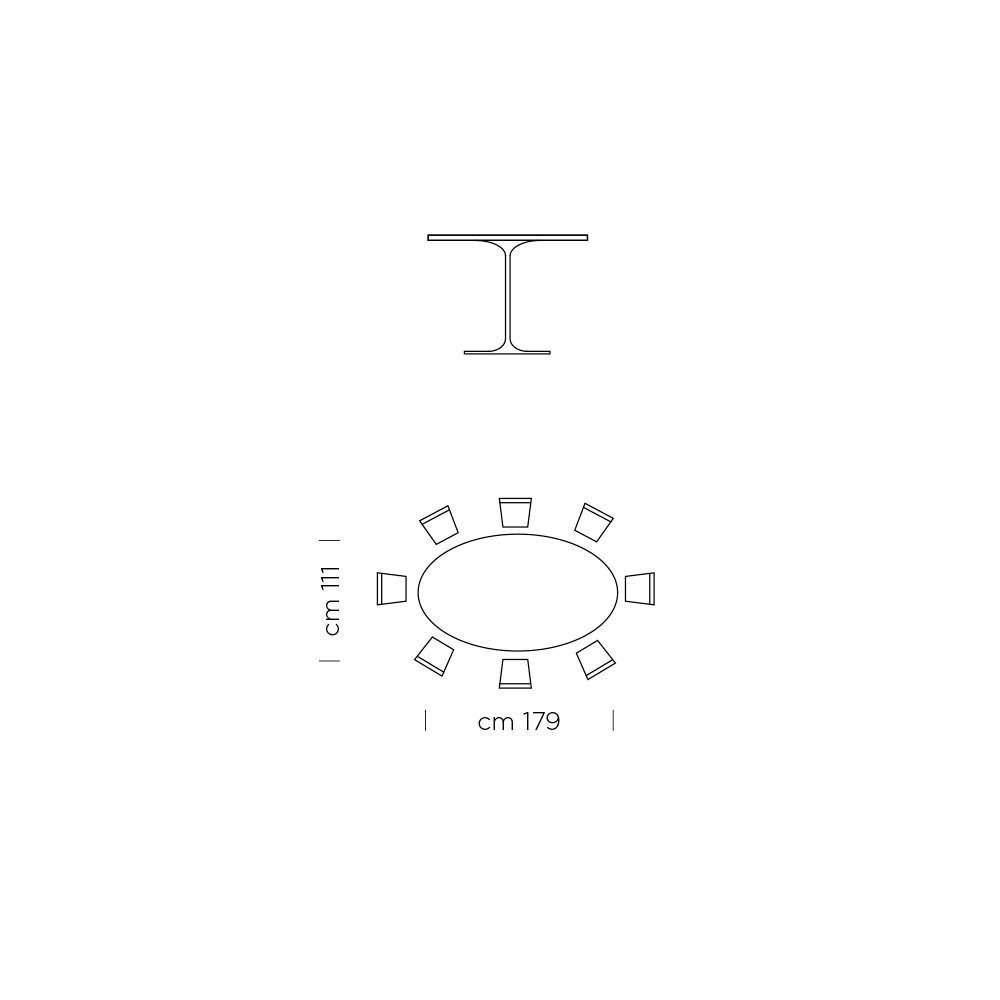 طاولة طعام بيضاوية مصنوعة في إيطاليا مع سطح فينيكس وقاعدة من الألومنيوم.