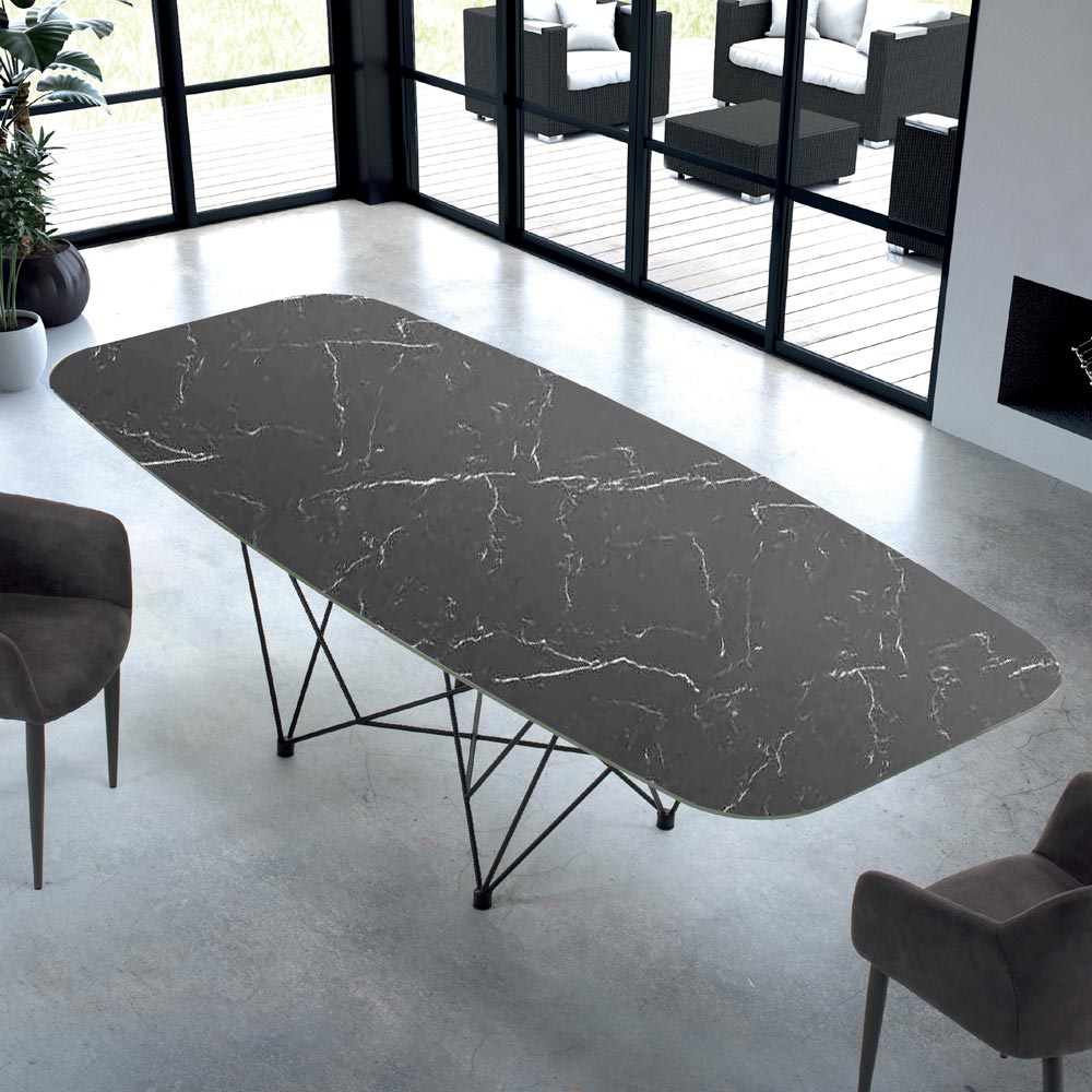 توفر طاولة Ezzellino على شكل برميل لغرف الطعام وغرف المعيشة تصميمًا أنيقًا وبسيطًا مناسبًا لجميع البيئات. مصنوعة يدويًا في إيطاليا بمواد ذات جودة ممتازة ومصنوعة بنسبة 100% في إيطاليا. يتميز بوجود سطح سيراميكي تم الحصول عليه من ورقة زجاج مشطوفة وورقة سيراميك ذات تأثير رخامي وقاعدة فولاذية مطلية باللون الأسود.