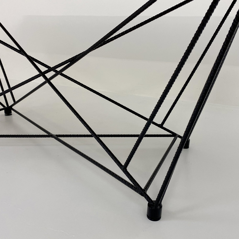 طاولة على شكل برميل مع سطح من السيراميك وقاعدة من الفولاذ الأسود مصنوعة في إيطاليا.