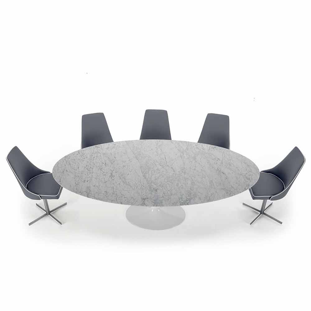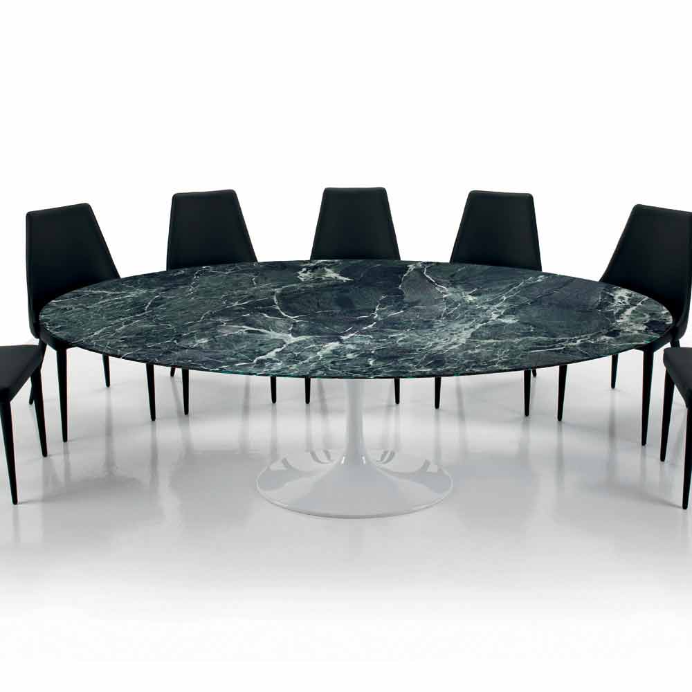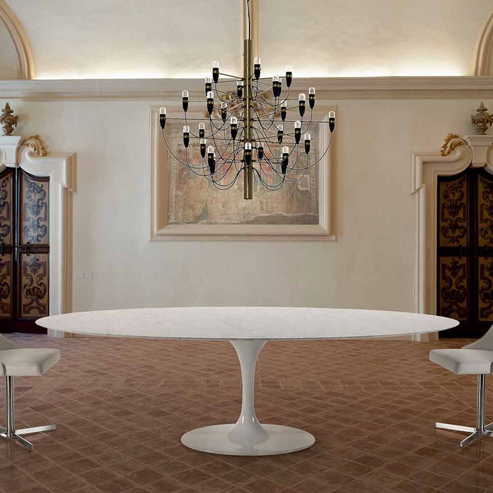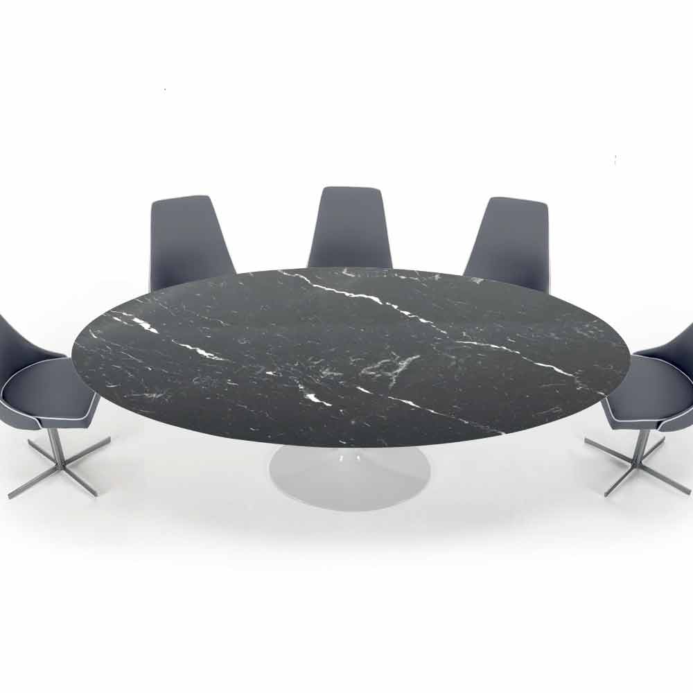 طاولة بيضاوية لغرفة المعيشة مع سطح من الرخام كارارا أو نيرو ماركوينيا، مصنوعة يدويًا في إيطاليا.