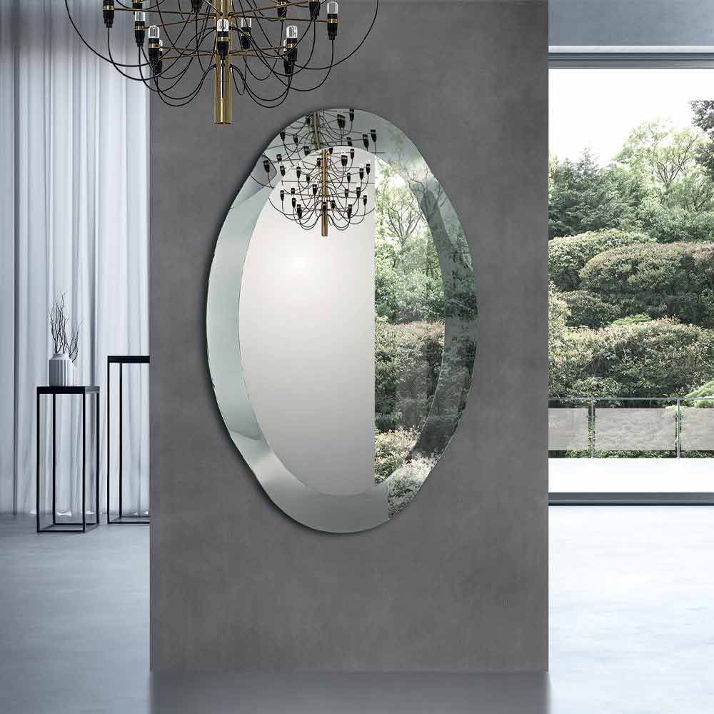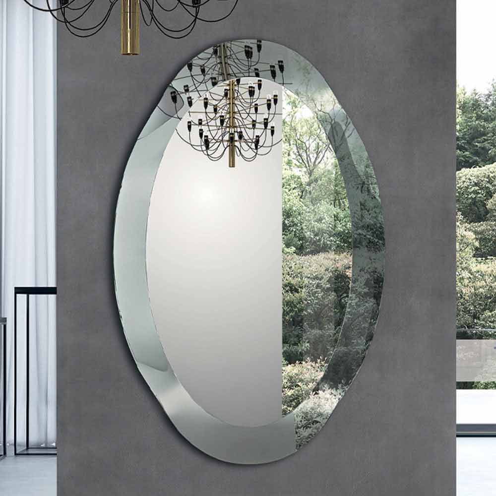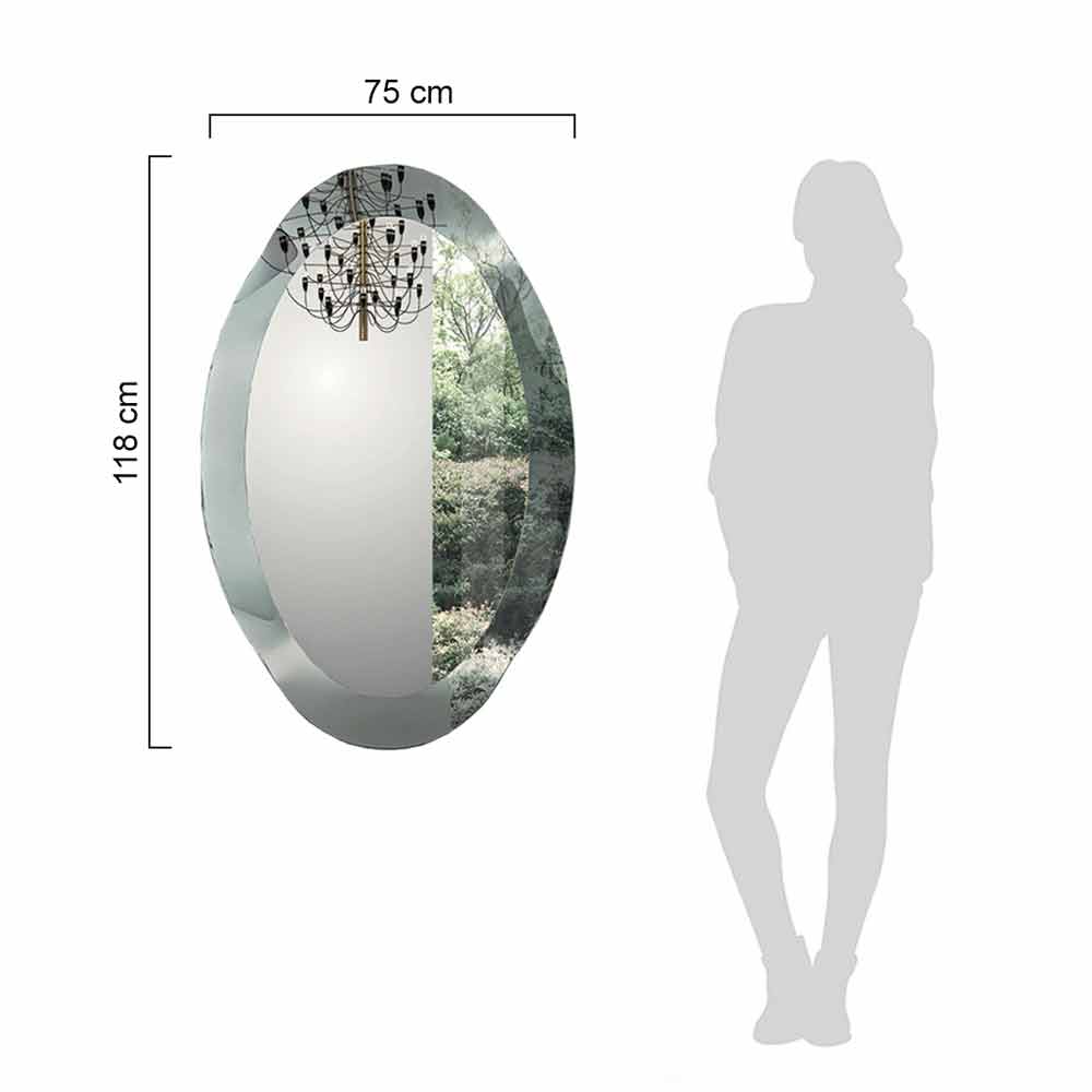 مرآة حائط بيضاويةمصنوعة في إيطاليا مع مرآة داخلية وإطار زجاجي منحني 6 مم بلمسة نهائية من الكريستال العاكس . تصميم هذه القطعة الفنية بسيطٌ للغاية، ولكنه مُثريٌّ وفريدٌ بفضل لمساته النهائية الرائعة وهيكله غير المنتظم، مما يُضفي عليه لمسةً من الحركة والأصالة. والنتيجة مرآةٌ عصريةٌوأنيقة ، مثاليةٌ للوضع في بيئاتٍ عصريةٍ تتطلب لمسةً من الرقيوالأناقة .