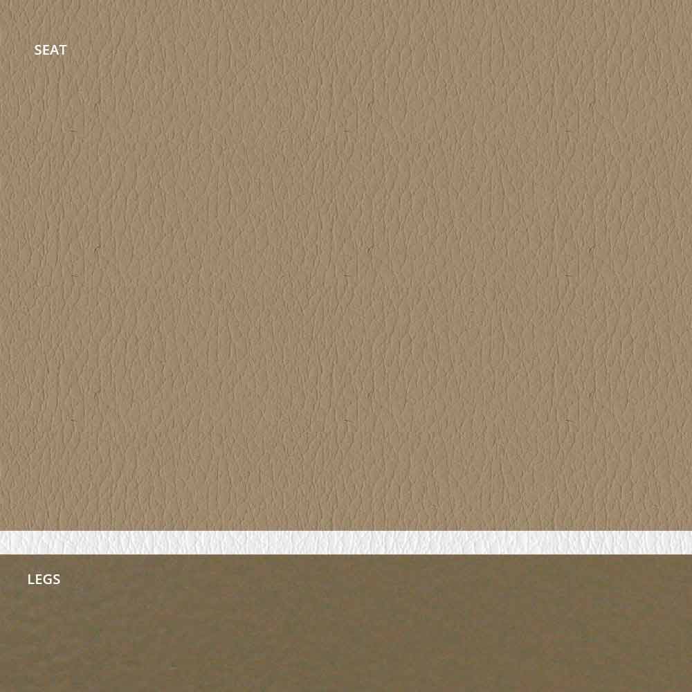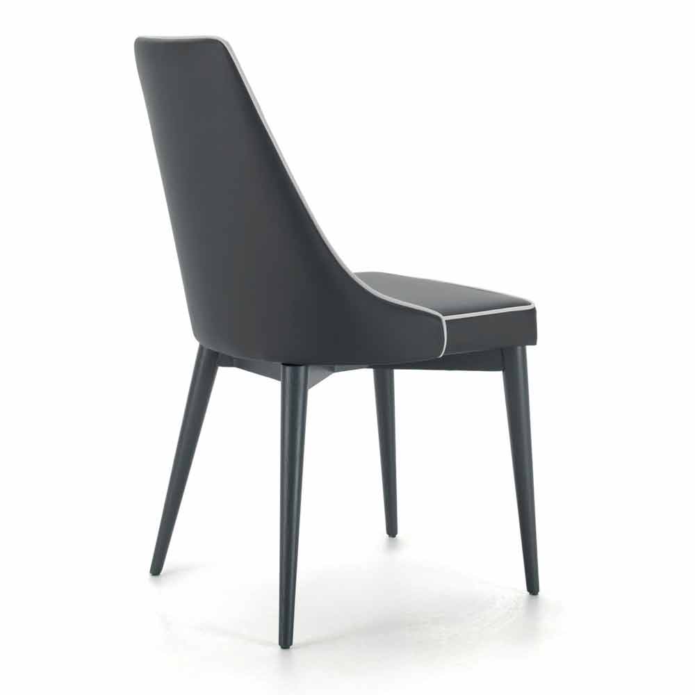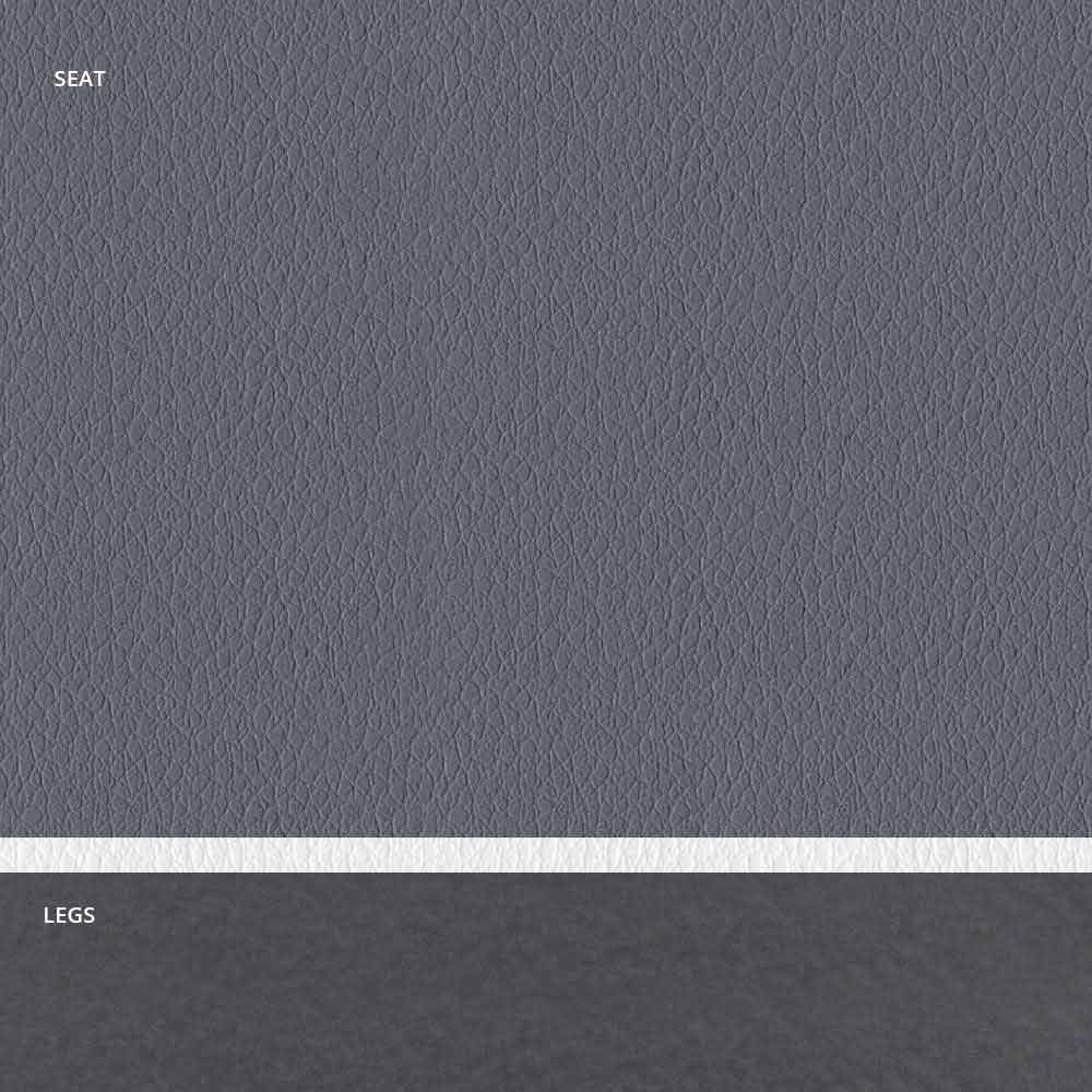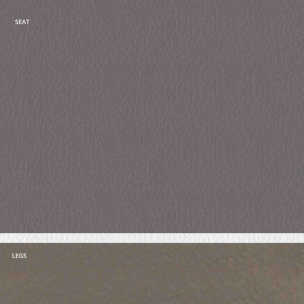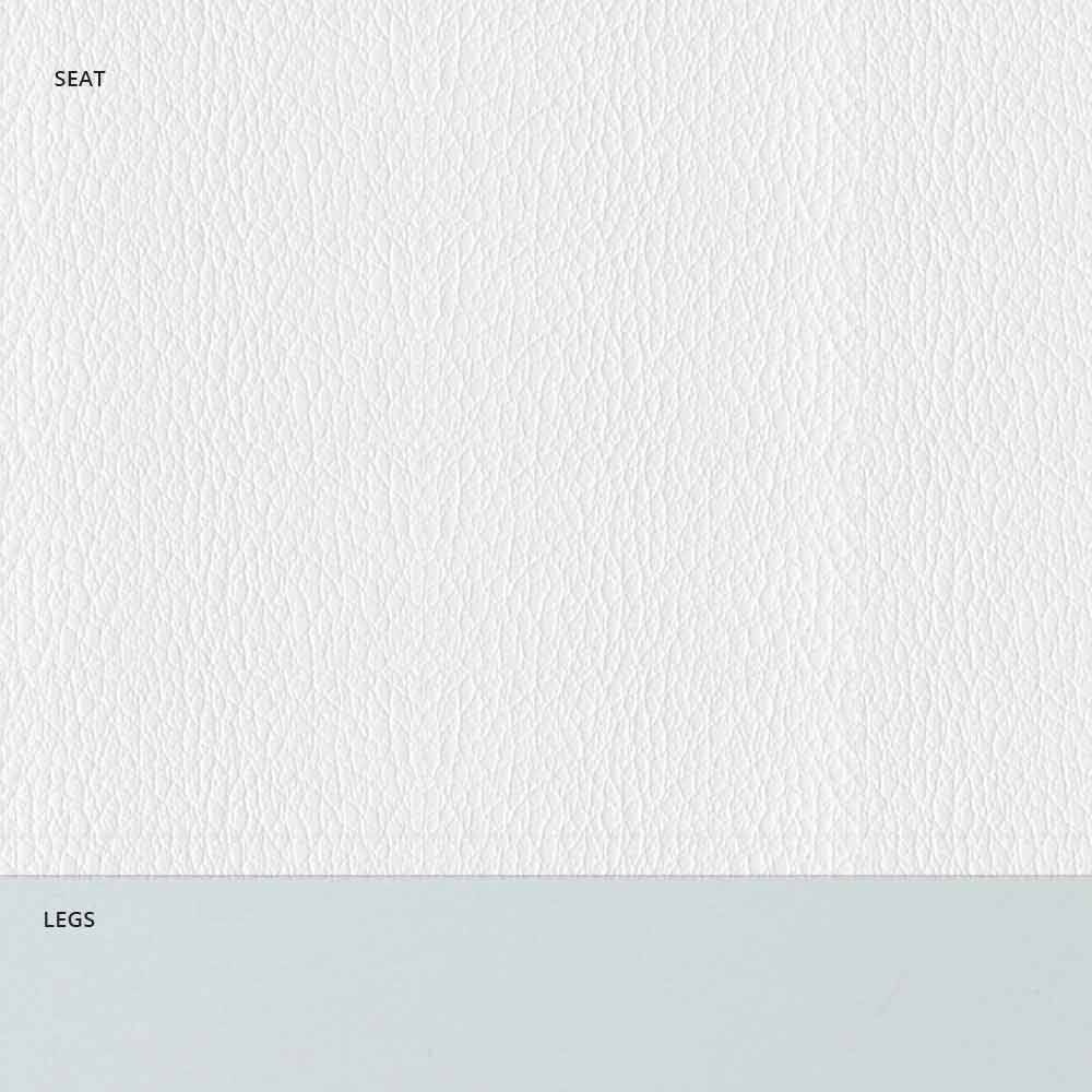 كرسي مبطن فاخر بقاعدة من الفولاذ الجرافيتي ومقعد من الجلد البيئي مع حواف بيضاء؛ مصنوع يدويًا في إيطاليا.