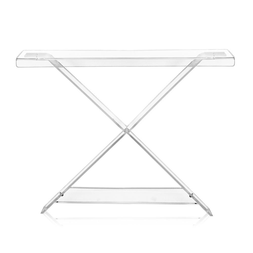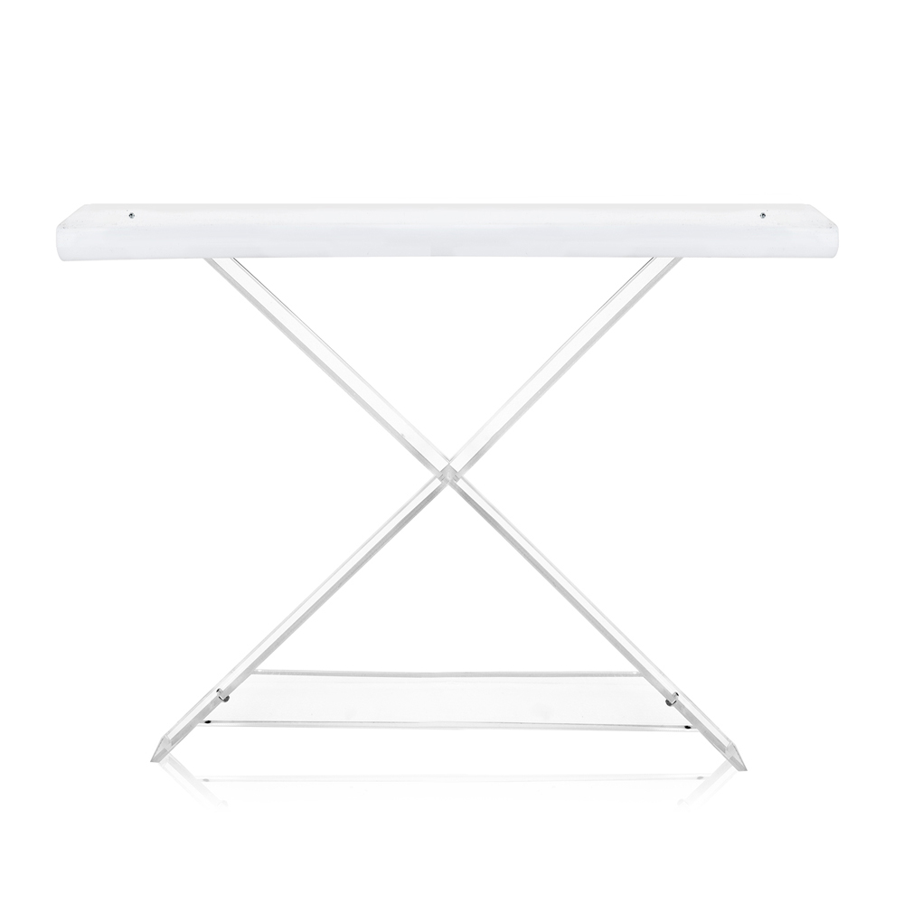 كونسول بتصميم عصري، مصنوع من زجاج شبكي بوليمري بكر 100%، يضمن لمعانه ولمعانه مع مرور الوقت. تُوضع الكونسول عند مدخل المنزل، أو في غرفة المعيشة أو غرفة النوم، لتضفي تصميمًا عصريًا وأجواءً ترحيبية. زيّن سطحها بالصواني، وصناديق المجوهرات، والعناصر الزخرفية كالنباتات، والمزهريات، والصور الفوتوغرافية، لتضفي لمسةً شخصيةً على المكان بكل سهولة وذوق. خفيفة الوزن، وسهلة النقل والتعديل في مختلف غرف المنزل.