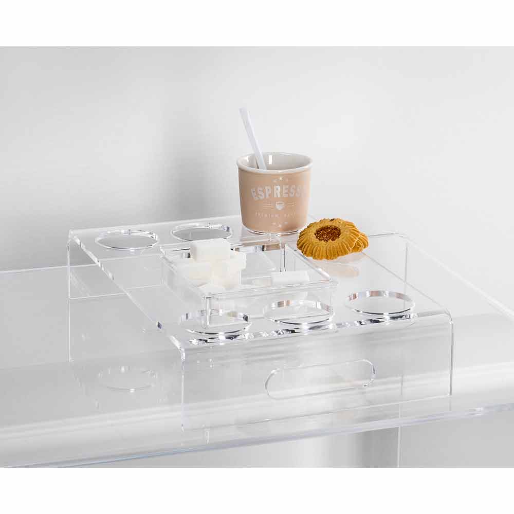 صواني القهوة هذه ذات المقابض مصنوعة من زجاج شبكي شفاف 100% من البوليمر البكر ولها تصميم أنيق وراقي ومقاومة للغاية. يضمن زجاج PMMA سطوعًا وبريقًا للمنتج بشكل ثابت وغير متغير بمرور الوقت. تم تصميمه وتصنيعه في إيطاليا باستخدام مواد إيطالية.