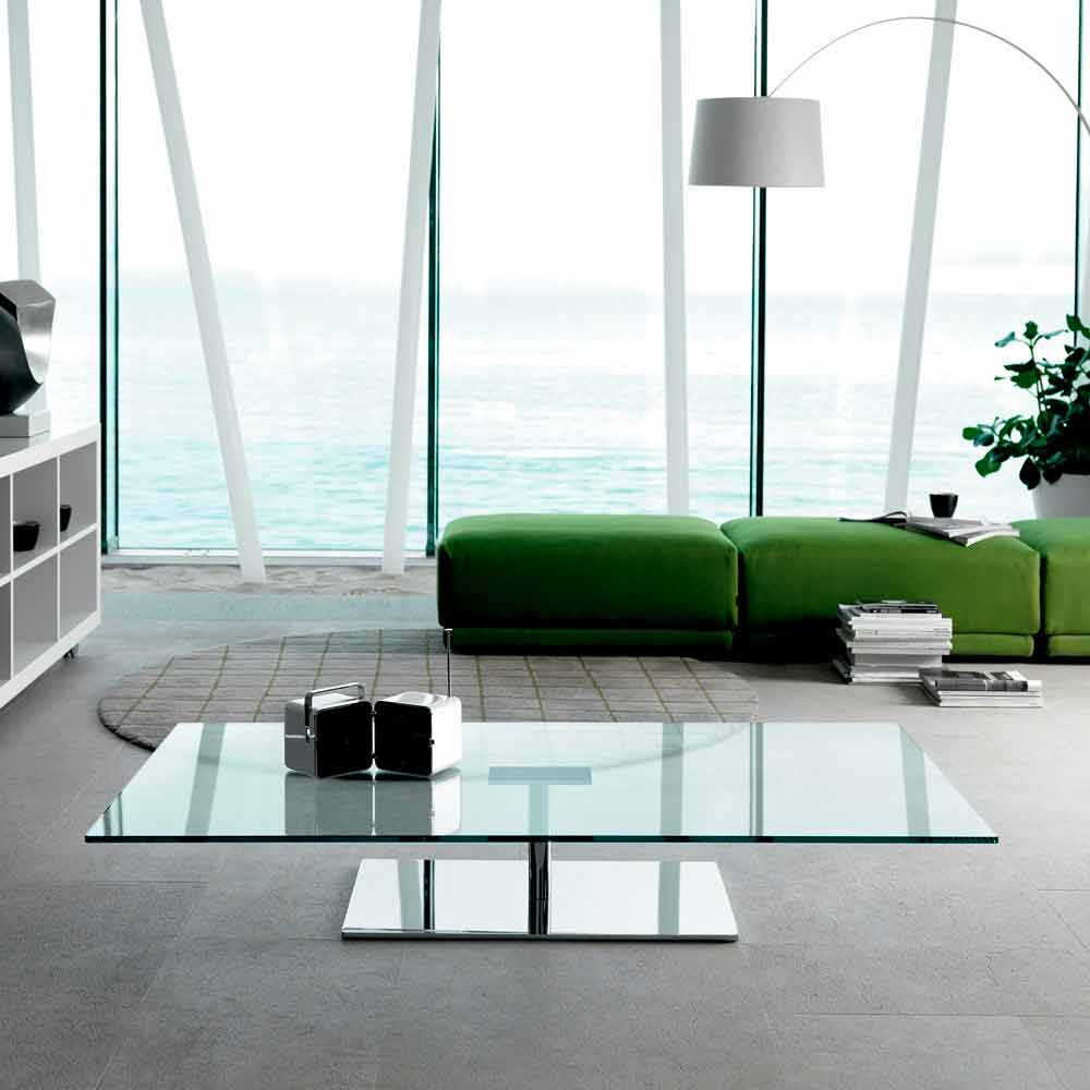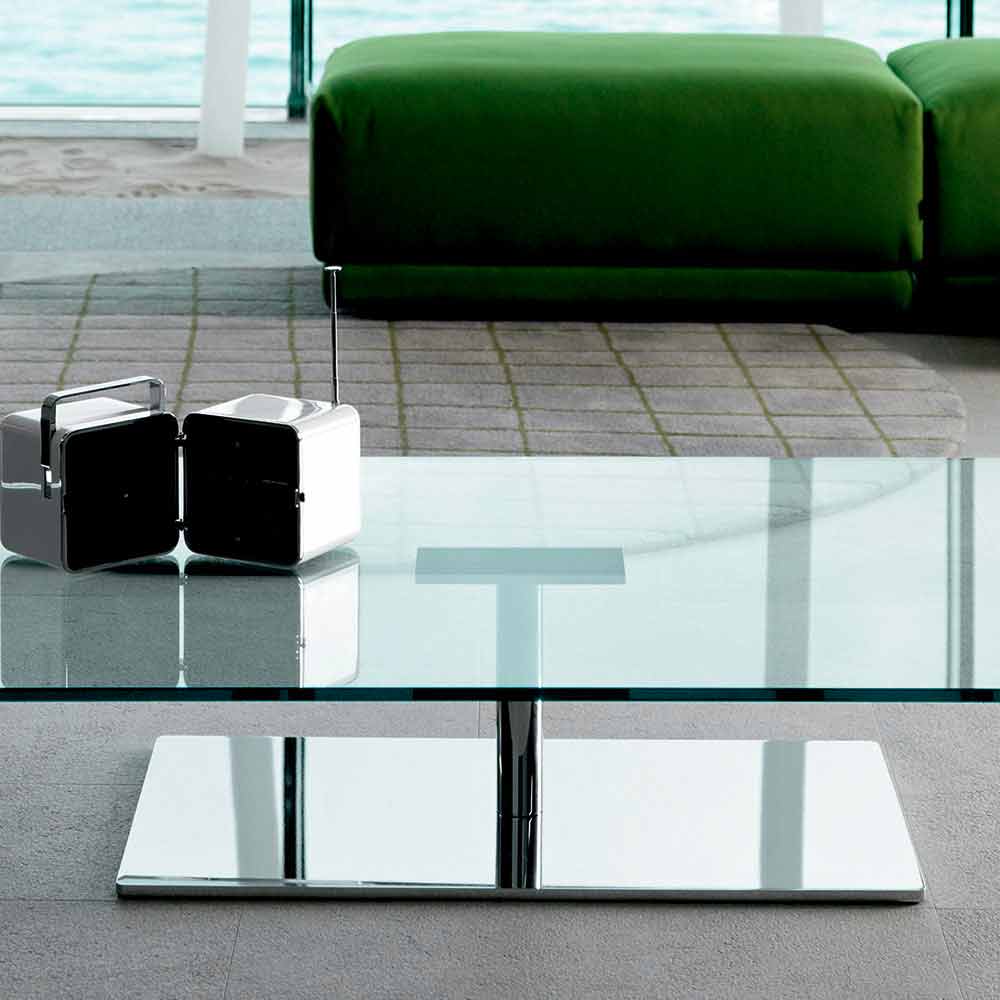 تتميز طاولة القهوة المنخفضة هذه لغرفة المعيشة بتصميم مستطيل الشكل بأن الجزء العلوي مصنوع بالكامل من الزجاج وقاعدة دعم معدنية بلمسة نهائية من الكروم أو البرونز مما يخلق إضاءة رائعة وتأثيرات ثلاثية الأبعاد.