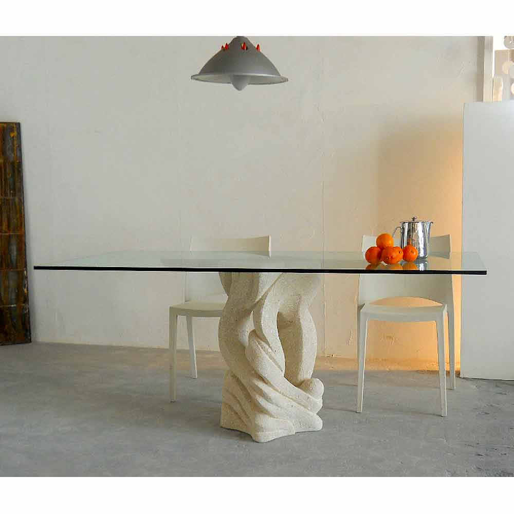 طاولة طعام مستطيلة بقاعدة من الحجر الطبيعي من أسكانيو، صنع في إيطاليا طاولة طعام أسكانيو مصنوعة بالكامل في إيطاليا. قاعدتها مصنوعة من حجر فيتشنزا الطبيعي، ونُحتت يدويًا من كتلة الحجر الأصلية. سطحها مصنوع من الكريستال العائم (سمكه 15 مم)، ومدعم بقضيب معدني مصقول ومطلي. يتكون حجر فيتشنزا الطبيعي في الغالب من كربونات الكالسيوم، والذي نشأ من انهيار الشعاب المرجانية واستقرار الكائنات البحرية، مثل الأصداف والقشريات والطحالب، في قاع البحر. يأتي الجدول Ascanio مع شهادة أصالة مرقمة.