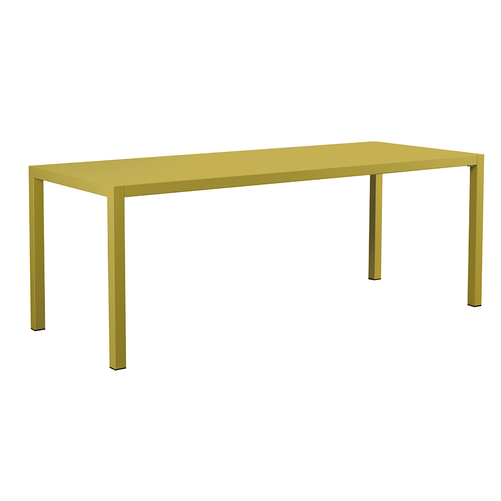 طاولة طعام خارجية مستطيلة قابلة للتكديس وتسوية ذاتية مصنوعة في إيطاليا بالكامل من الفولاذ المجلفن .