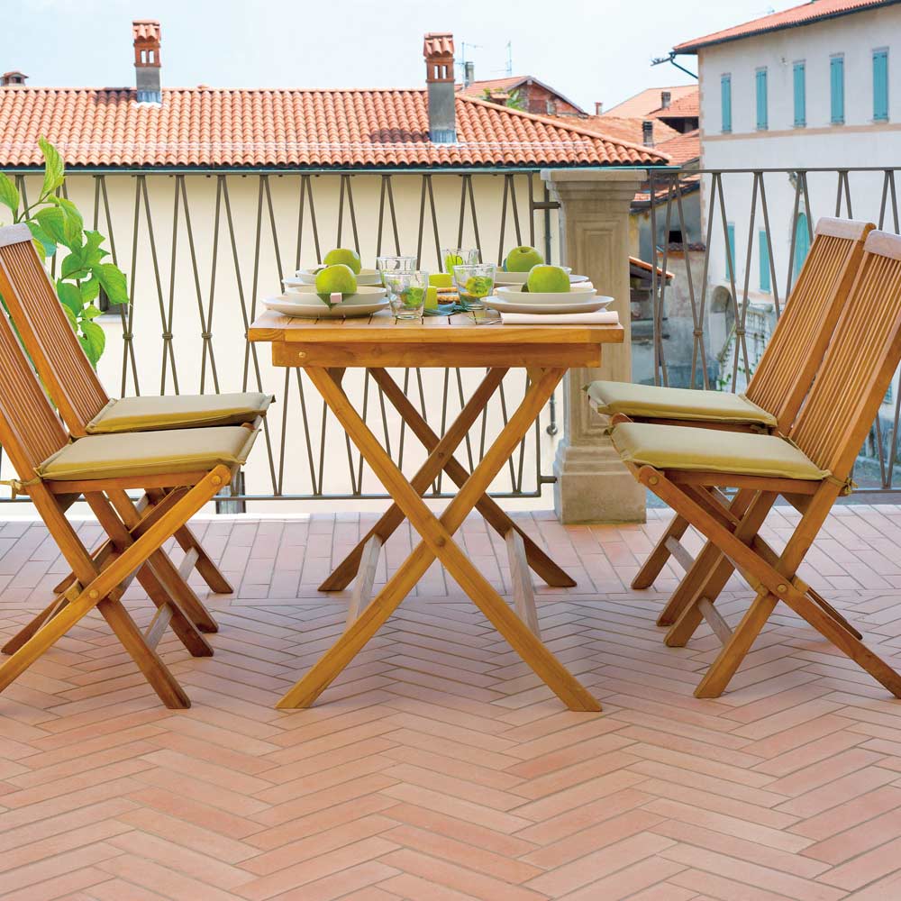 يُصنف خشب الساج كأثمن أنواع الأخشاب المتاحة للأثاث الخارجي. يتميز بمتانته وثباته العاليين، ومقاومته للعوامل الجوية والفطريات والطفيليات والحشرات. كما يحتوي على نسبة عالية من الزيوت الطبيعية التي تجعله مقاومًا وتحد من امتصاص الرطوبة. مع مرور الوقت، يميل لون أثاث الساج إلى الرمادي الفضي عند تعرضه لأشعة الشمس والمطر والرطوبة، وذلك بفضل عملية أكسدة سطحية تحمي الخشب بشكل طبيعي. هذه العملية ذات أهمية جمالية بحتة، ولا تُلحق الضرر ببنية الخشب أو جودته. ظهور الزيت على سطح أثاث الساج عملية طبيعية: فقد يتسرب الزيت خلال الأشهر الأولى، ويستمر لفترة أطول أو أقل حسب البيئة التي يوضع فيها. الزيوت الطبيعية الموجودة في خشب الساج هي ما يجعله أفضل أنواع الخشب للأثاث الخارجي.