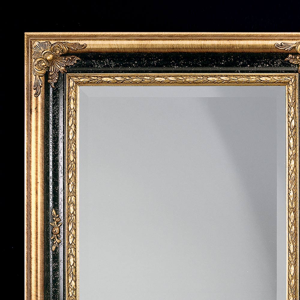 مرآة مستطيلة أنيقة بإطار خشبي مزين بورق الذهب والورنيش الأسود.بفضل تصميمها الكلاسيكي ، تعد هذه المرآة مثالية لإضفاء لمسة أنيقة وفاخرة على أي غرفة. قطعة فريدة وراقية، مصنوعة بالكامل في إيطاليا على يد حرفيين ماهرين ، خبراء في الفن ، يُكملون كل قطعة ببراعة وذوق رفيع. يُصنع باستخدام أجود الخامات ، ويُنجز العمليدويًا بأقصى درجات العناية والاحترافية التي تُميز المنتجات المصنوعة في إيطاليا .