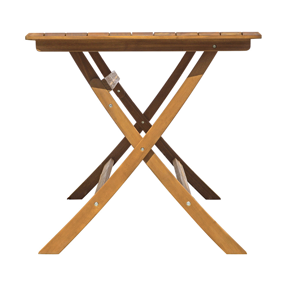 مصنوعة من خشب الأكاسيا ، المعروف بمتانته وقوته، تتميز هذه الطاولة بتصميمها الجميل، وقدرتها على مقاومة العوامل الجوية، مما يضمن عمرًا افتراضيًا طويلًا. تتناسب خطوطها الأنيقة وتصميمها المدمج تمامًا مع أي مكان خارجي، مما يوفر مساحةً مثاليةً للاسترخاء والتواصل الاجتماعي.