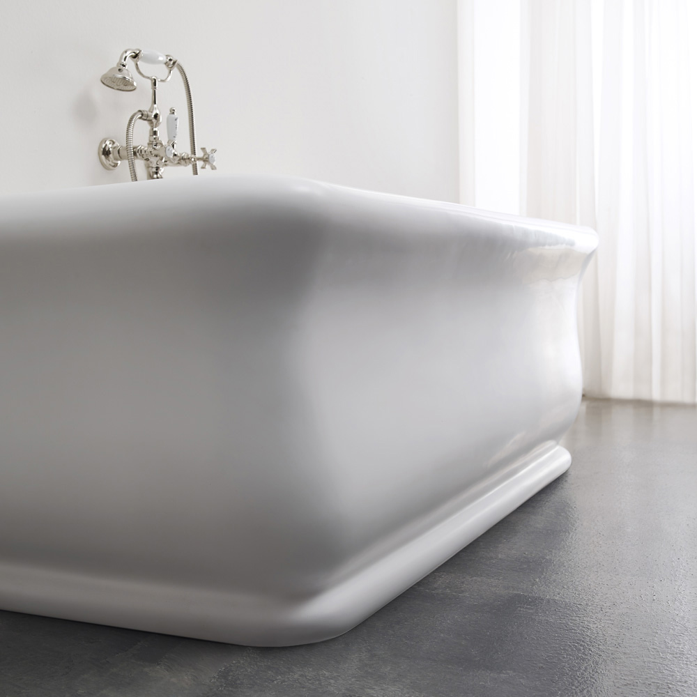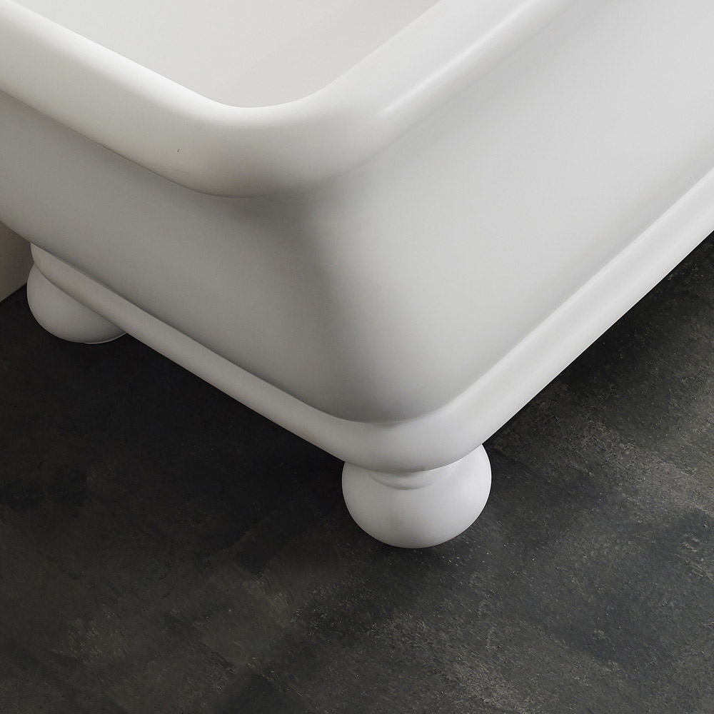 حوض استحمام مستطيل أبيض بزوايا ناعمة بسطح صلب مصنوع في إيطاليا