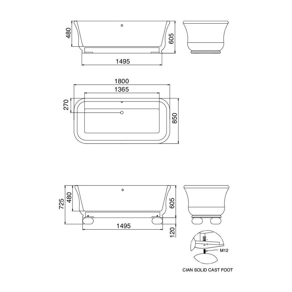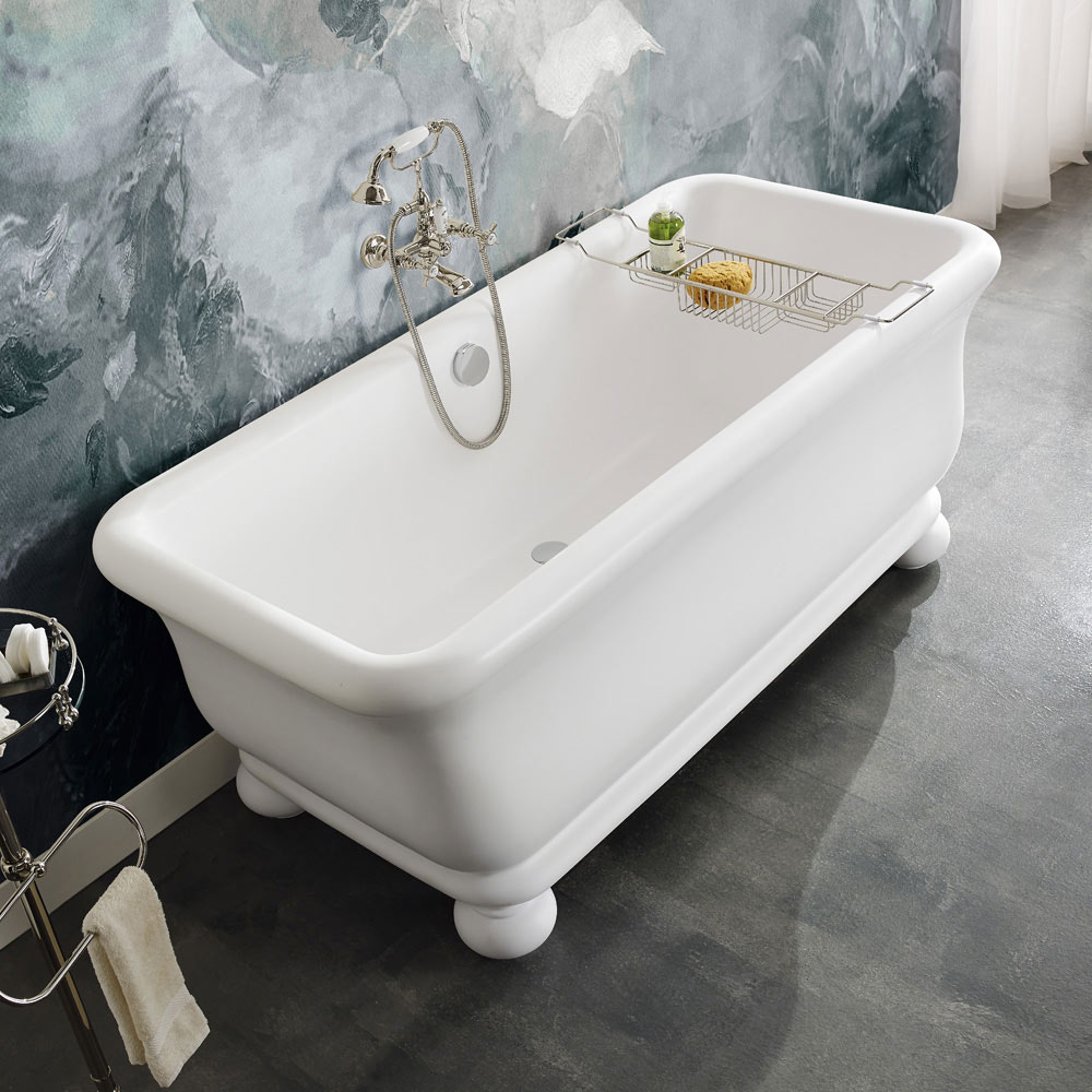 حوض استحمام أبيض مستطيل الشكل بسطح صلب، مزيج من راتنج الأكريليك المُعدّل بمركبات معدنية، مع فتحة تصريف لعمود الصرف. حوض استحمام أصلي مرتفع بطول 1.2 متربسطحصلب اختياري. متوفر باللون الأبيض المطفي أو اللامع . يُتيح خليط التركيبة هذا اللون المميز. كما أنه متجدد للغاية، ومتجانس ، وغير مسامي بنسبة 100% ، وبالتالي مقاوم للماء.