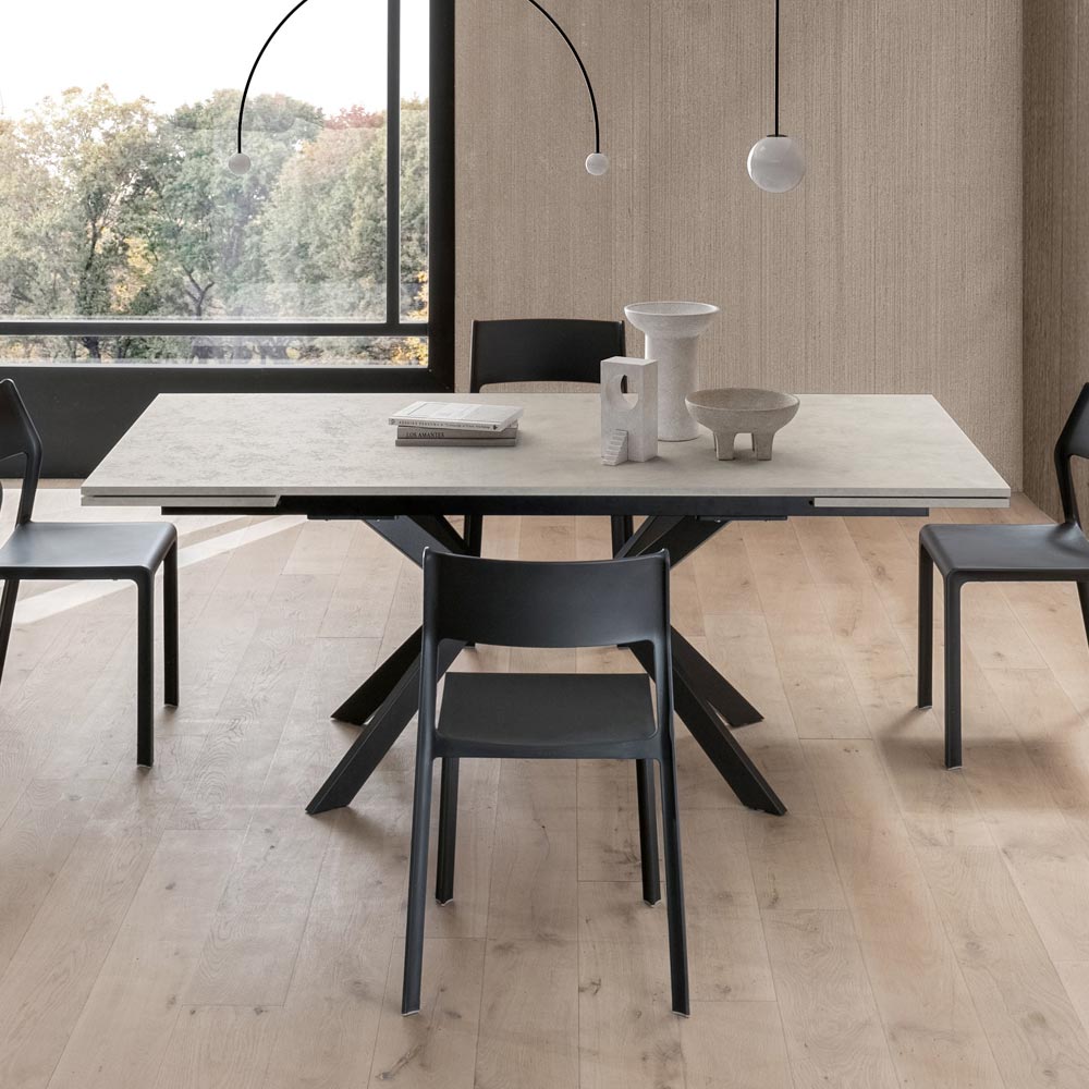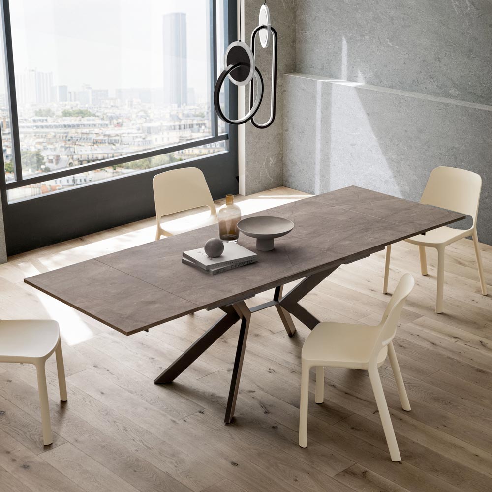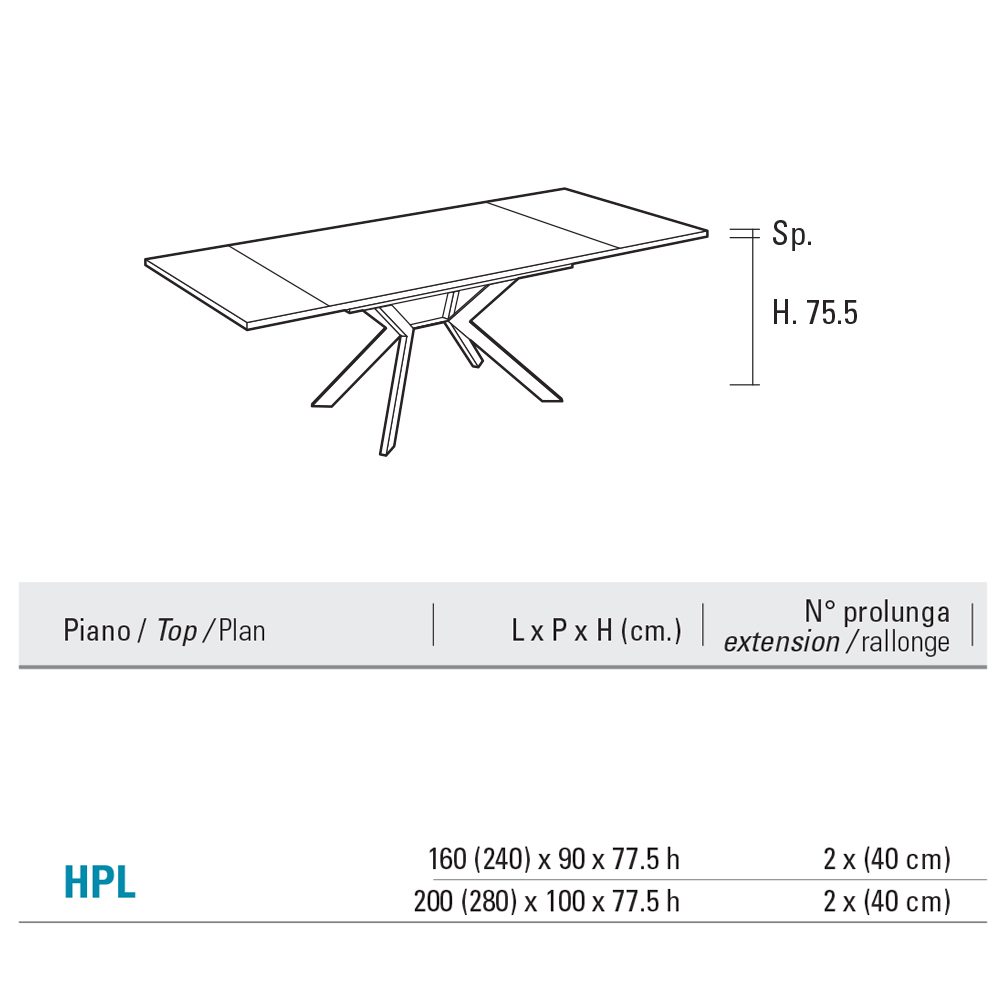 طاولة مستطيلة قابلة للتمديد حتى 240 أو 280 سم مصنوعة من HPL والمعدن - موجودة