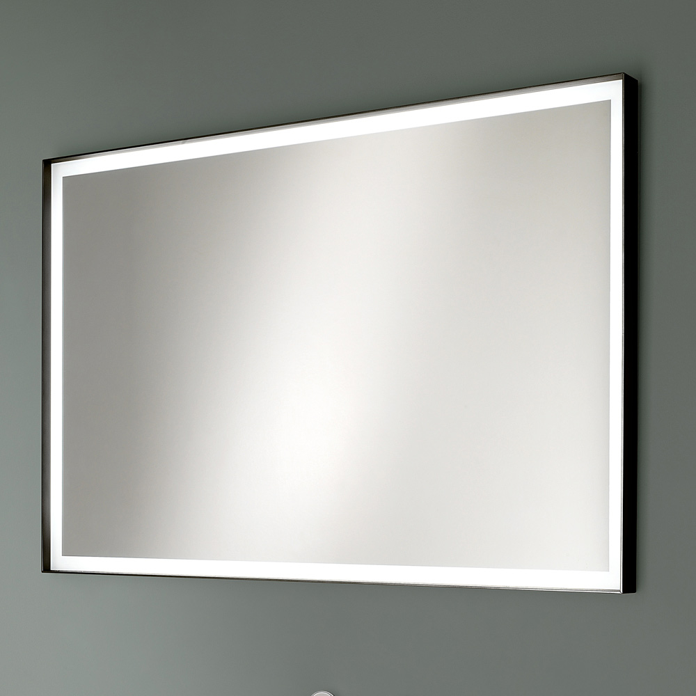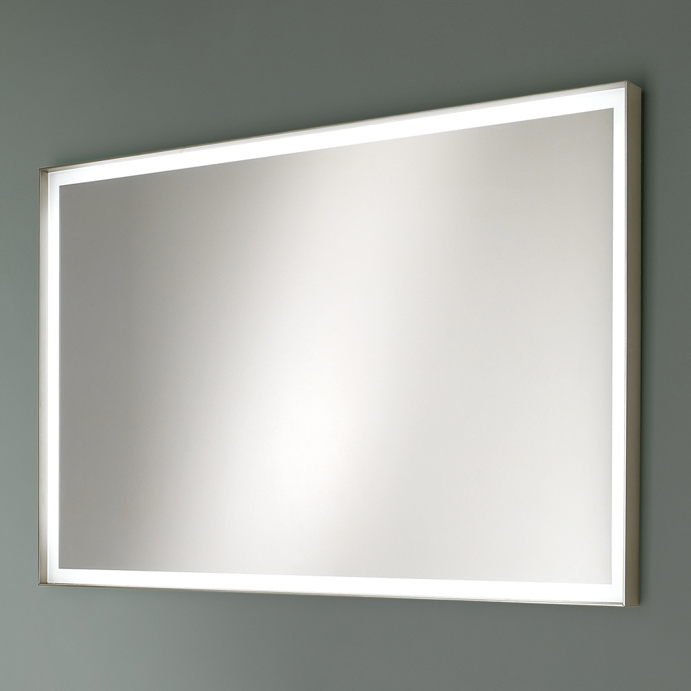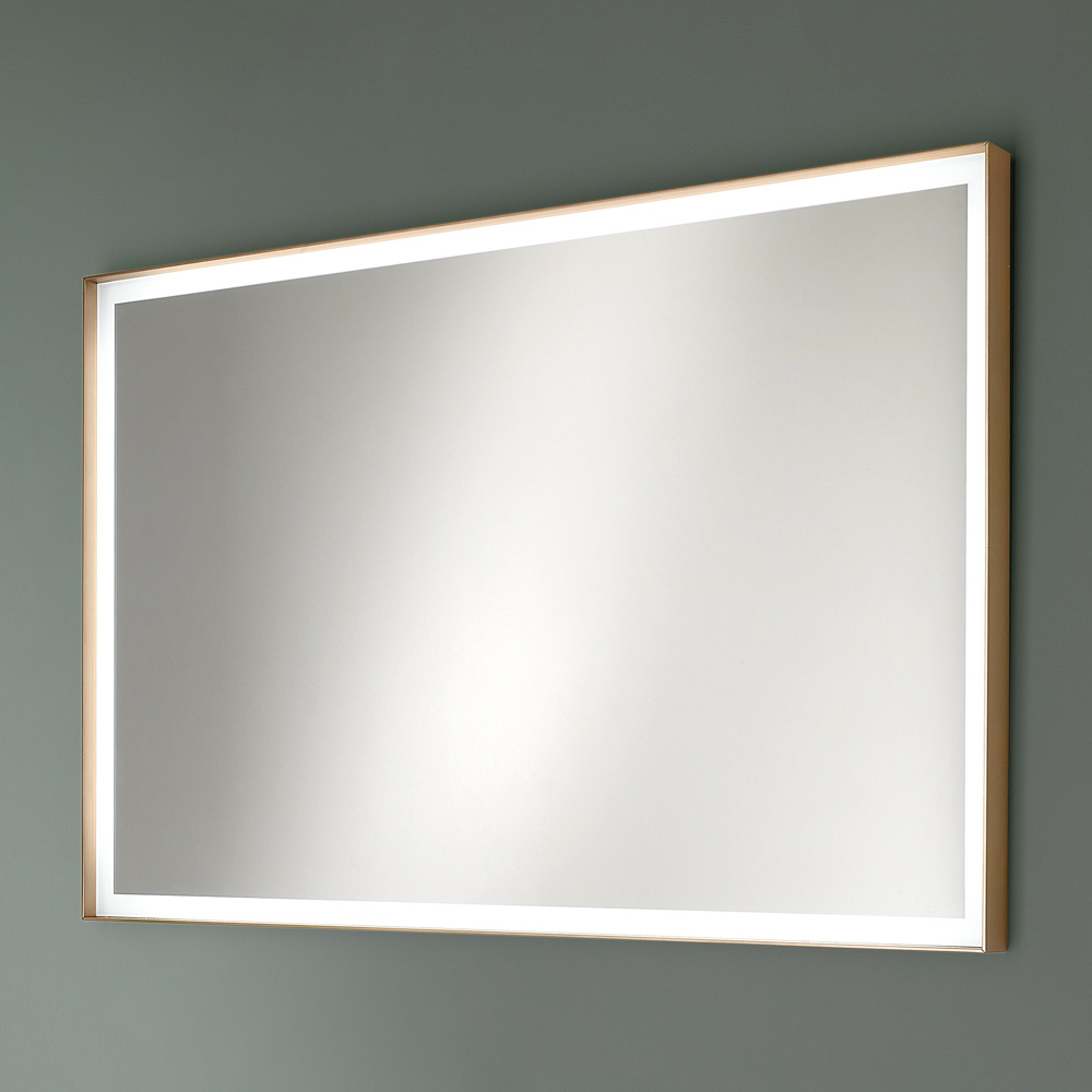 مرآة حائط مستطيلة الشكل بإطار معدني وأربعة أشكال وإضاءة LED، صنعت في إيطاليا.
