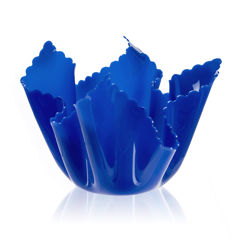 مزهرية متعددة الأغراض مصنوعة من زجاج شبكي ملون ومزخرفة يدويًا، مقاسين وقطعتين مصنوعة في إيطاليا.