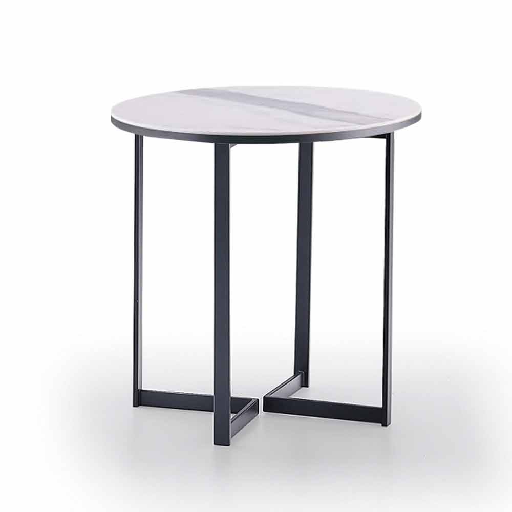 طاولة قهوة حديثة من المعدن المطلي مع سطح من الفخار بتأثير الرخام، عالية الجودة صنع في إيطاليا.