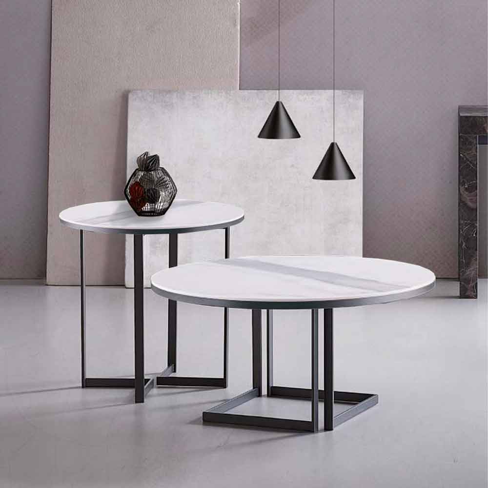 طاولة قهوة مصنوعة في إيطاليا بقاعدة معدنية مطلية باللون الرمادي الأسود وسطح دائري من الحجر الخزفي المصقول أو غير اللامع بسمك 2 سم. يُميز هيكلها التصميمَ بأكمله، مما يسمح، بفضل شكلها المميز، بابتكار ألعابٍ من الارتفاعات والأبعاد والتشطيبات، مما يُطلق العنان للإبداع ويُتيح لك تأثيث غرفة معيشتك بأسلوبٍ أصلي ومبتكر تمامًا. يضمن استخدام المعدن منتجًا متينًا يتمتع بمتانة ممتازة، بينما يُثري الخزف الحجري التصميمَ النهائي، مُضفيًا على الطاولة والغرفة بأكملها لمسةً من الأناقةوالرقي .