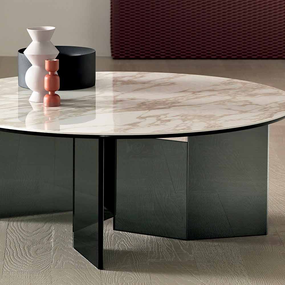 مصنوعة من الزجاج المدخن للقاعدة وسطح من السيراميك المصقول من طراز كالاكاتا العربي ، وهي قطعة أثاث مصنوعة يدويًا في إيطاليا بمواد عالية الجودة مثالية لمنطقة المعيشة.