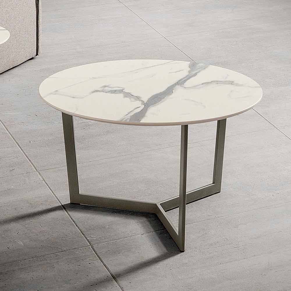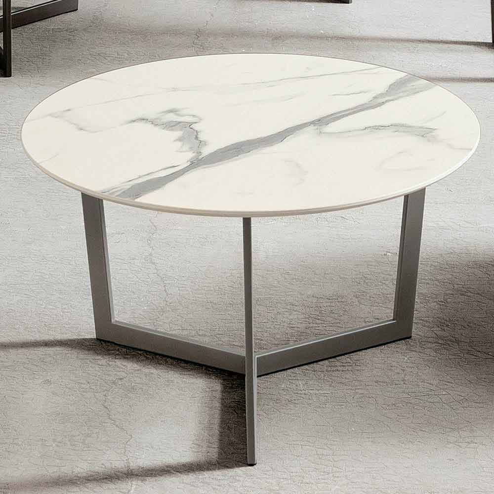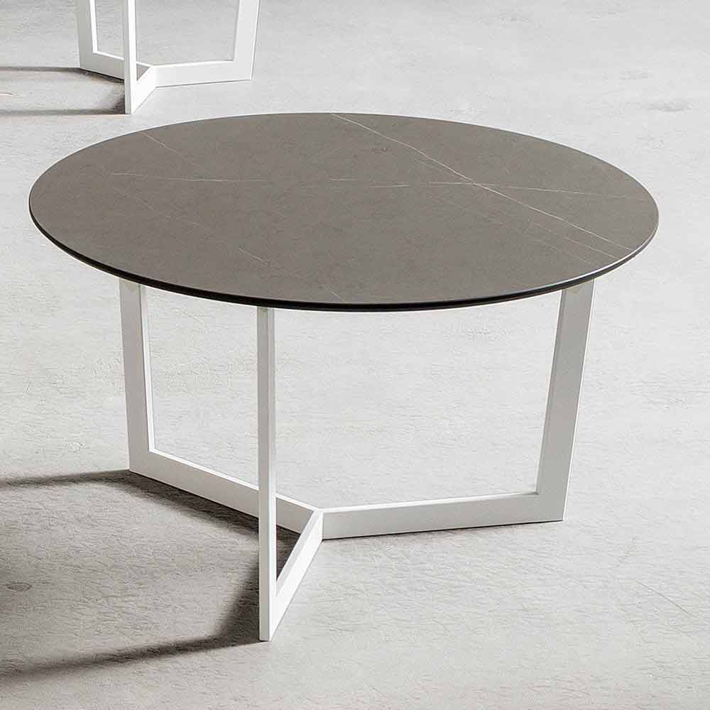 طاولة قهوة دائرية مع سطح من ألواح HPL الطبقية، صنع في إيطاليا، عالية الجودة.