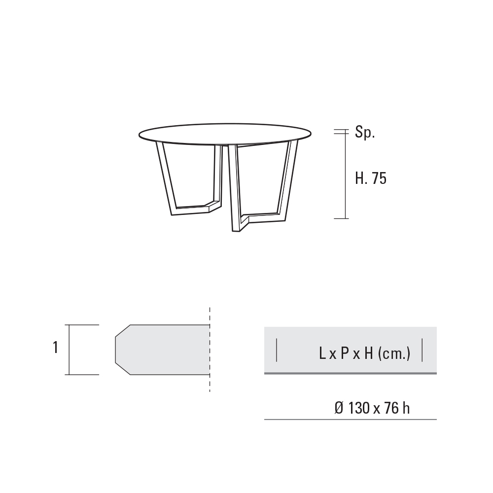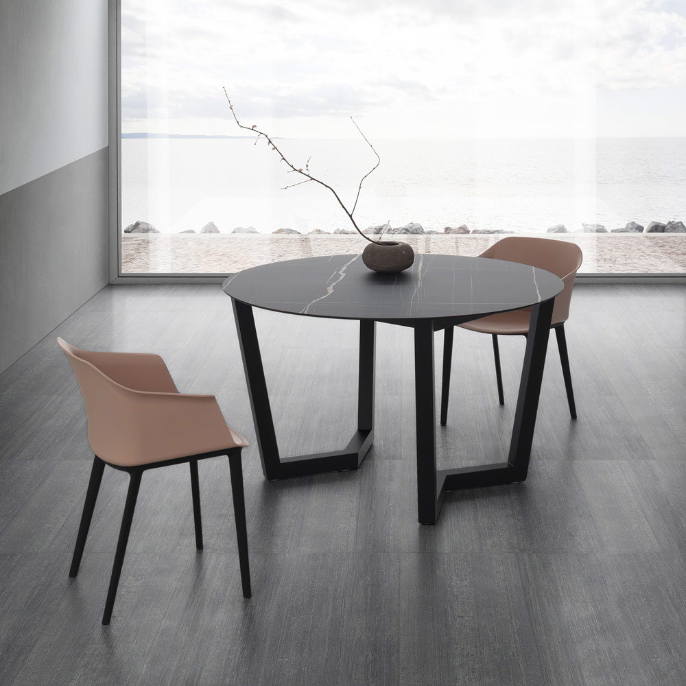 طاولة مطبخ مستديرة مصنوعة في إيطاليا ، بقاعدة معدنية مطلية بمسحوق الإيبوكسي، وسطح من ألواح HPL بسمك 10 مم. قطعة أثاث تتميز بتصميم أنيق ونحتي ، يجمع بين مواد متنوعة وشغف التصنيع.