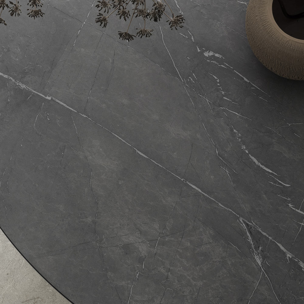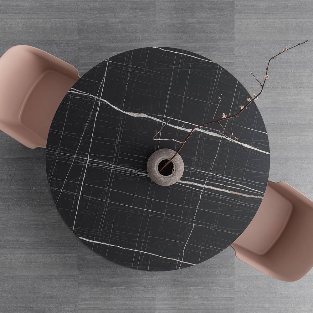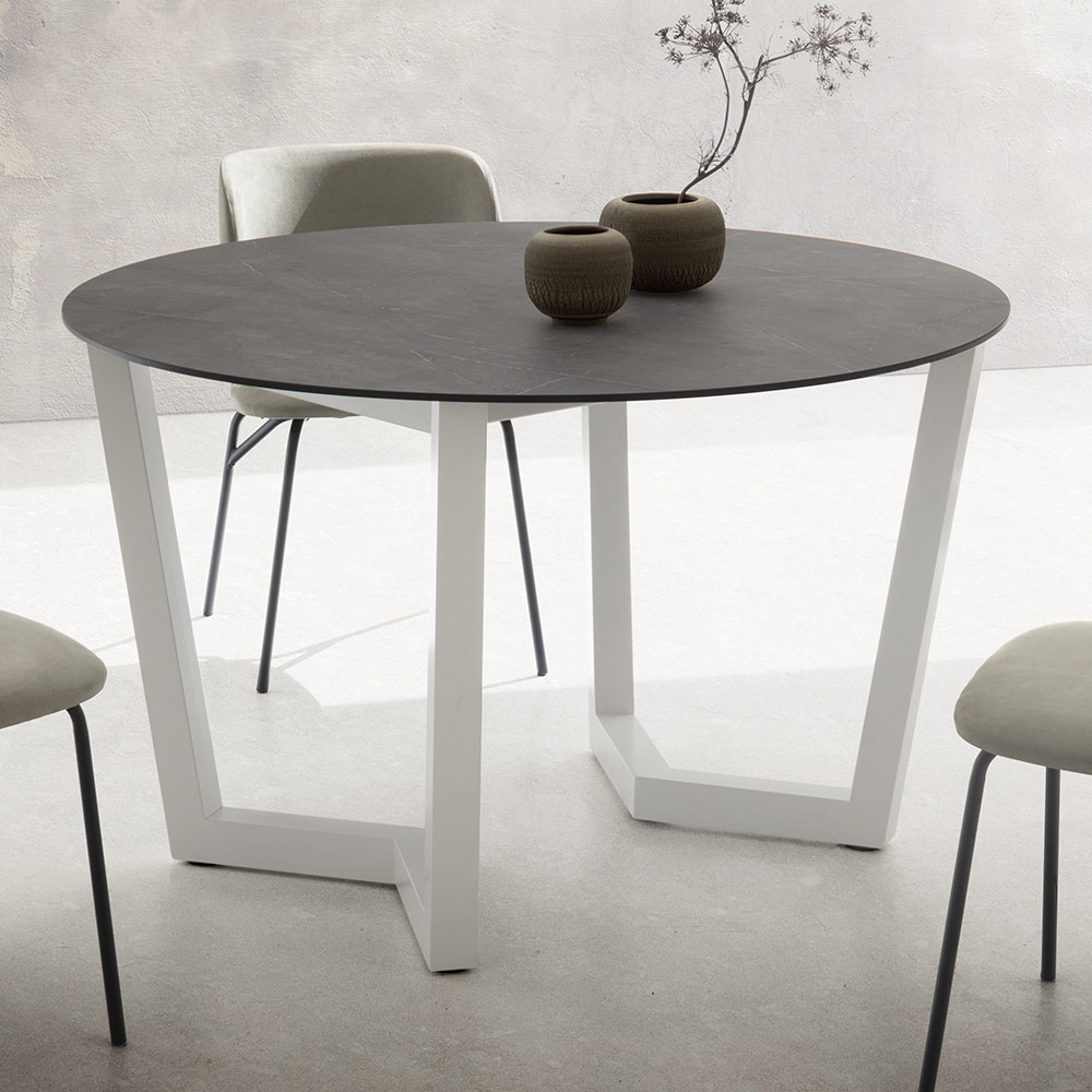 طاولة مطبخ مستديرة مع سطح من مادة HPL متعددة الطبقات صنع في إيطاليا.