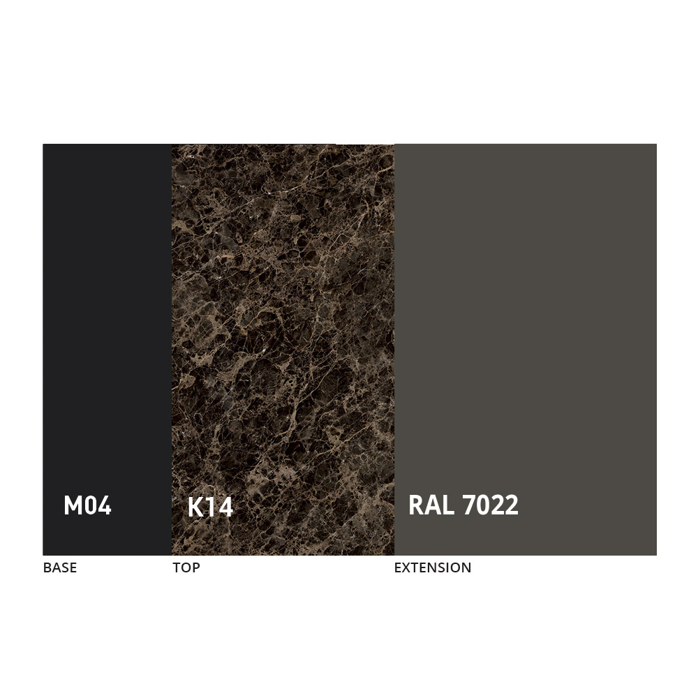 يمكن تخصيص سطح وقاعدة الطاولة بنماذج تشطيب مختلفة. للاستفسار، تواصل معنا عبر نموذج " طلب معلومات ".