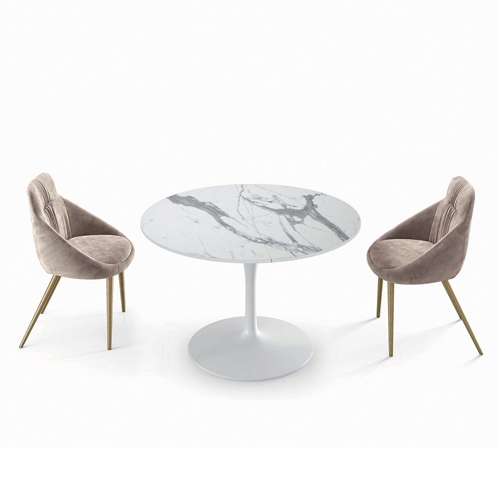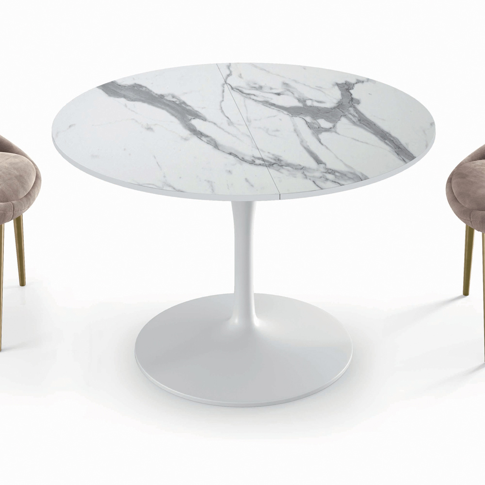 طاولة معيشة قابلة للتمديد مع ملحقات منفصلة للإدخال،سطح مغلف بطبقة نهائية غير لامعة، حافة مشطوفة بزاوية 45 درجة ، قاعدة من الألومنيوم المصبوب المطلي باللون الأبيض اللامع. تُنفَّذ سلسلة الإنتاج، من التصميم إلى الإنتاج، وصولاً إلى مراقبة الجودة، بالكامل في إيطاليا ، وذلك لضمان والحفاظ على الطابع الإيطالي الأصيل للخبرة العملية وأهمية علامة "صنع في إيطاليا". يهدف هذا المنتج العصري، الذي يتميز بتصميمه العصري، بشكل أساسي إلى سهولة استخدامه يوميًا دون المساس بالتصميم.