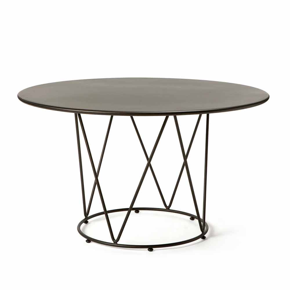 طاولة خارجية مستديرة حديثة مصنوعة بالكامل من الحديد المجلفن المطلي بالمسحوق، صنع في إيطاليا.