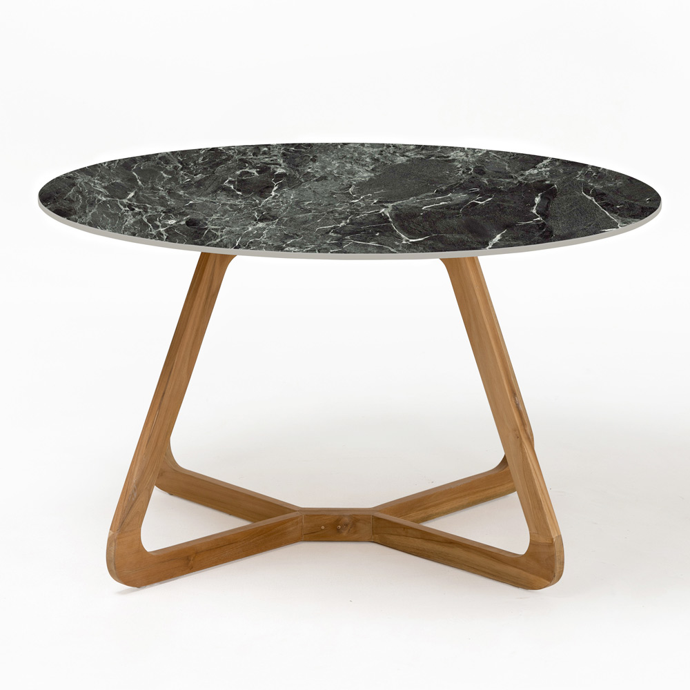 طاولة حديقة دائرية مصنوعة من الخشب والسيراميك، صنع في إيطاليا