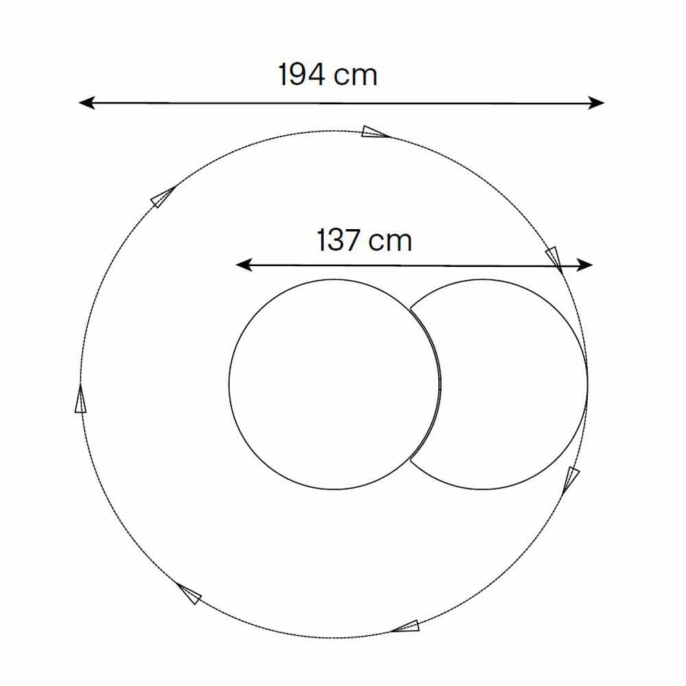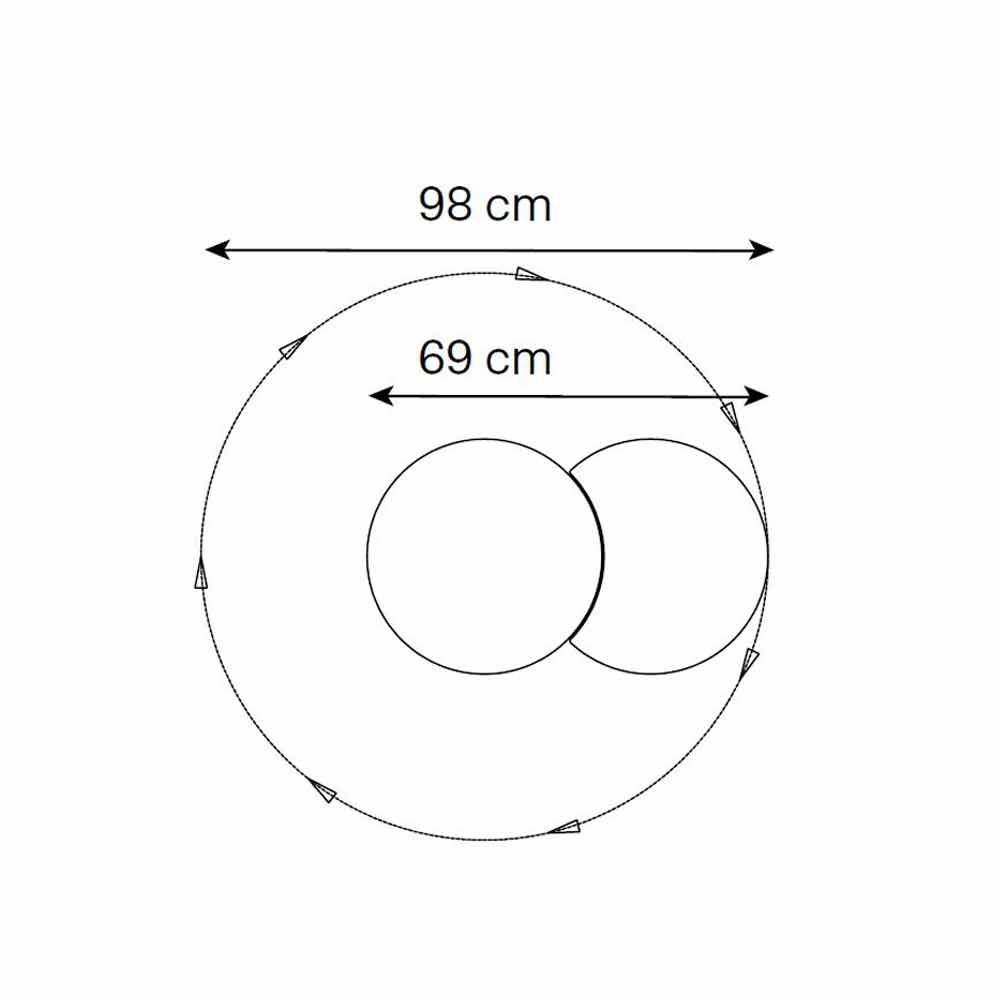 إنه منتج تم تصنيعه في إيطاليا يدويًا باستخدام مواد عالية الجودة ويتكون من هيكل مركزي ثابت وقمر صناعي يدور بزاوية 360 درجة كاملة.
