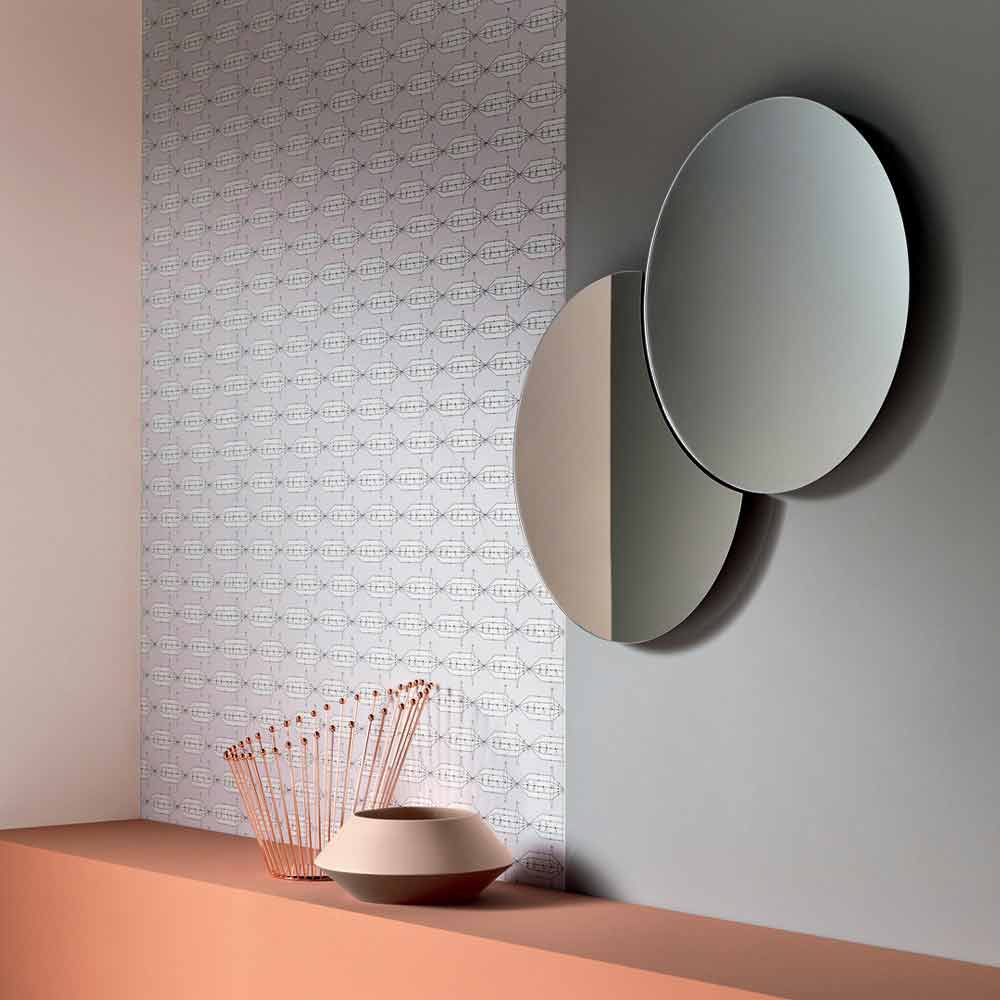 مرآة حائط دائرية على الطراز الحديث مع قمر صناعي دوار، مصنوعة يدويًا في إيطاليا.
