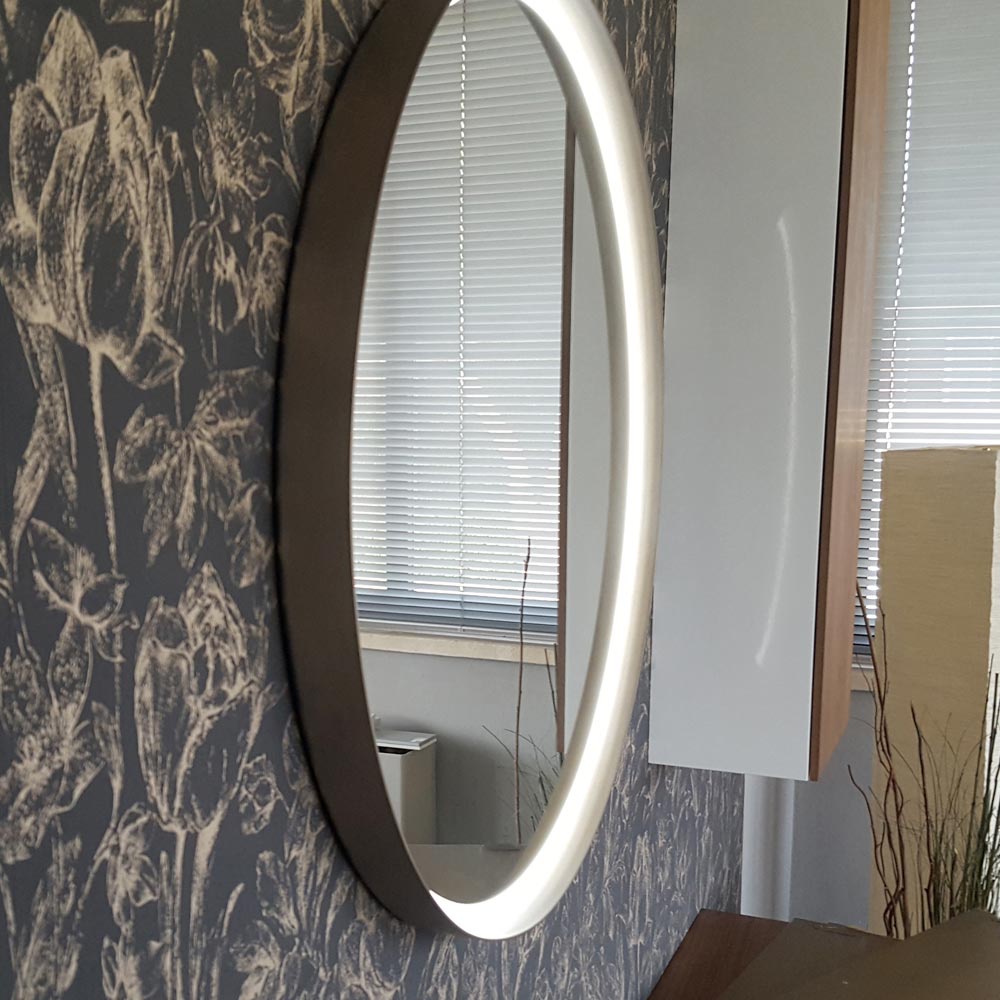 تتميز مرآة الحائط المستديرة هذه بتصميمها الرائع المصنوع من إطار معدني بأربعة تشطيبات بسمك 5 سم. مثالي لخلق أجواء فاخرة وراقية، فهو يتكيف مع سياقات مختلفة لتوصيف البيئة. يكتمل التصميم الوظيفي بإضاءة LED 4000k المدمجة على 4 جوانب.
