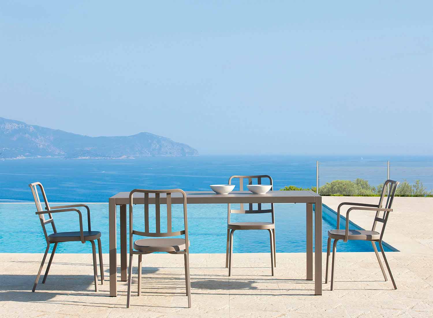 يعيد خط الإنتاج هذا إنشاء نوع من التصميم في منتصف الطريق بين الرجعية والمستقبلية، وذلك بفضل الخطوط الخفيفة والدقيقة لمنتجاته حيث يمكن دمج كل منها بسهولة مع أكثر أنماط الأثاث تنوعًا، من الأكثر كلاسيكية إلى الأكثر معاصرة. تم تصنيع هذه المنتجات في إيطاليا بتقنيات مبتكرة ومواد خام عالية الجودة، وهي مصممة لتأثيث البيئات الخارجية مثل الحدائق والتراسات ولكن أيضًا الحانات والمطاعم، وتضمن قوة ومتانة ممتازة بمرور الوقت مع الحفاظ على حيوية الألوان سليمة.