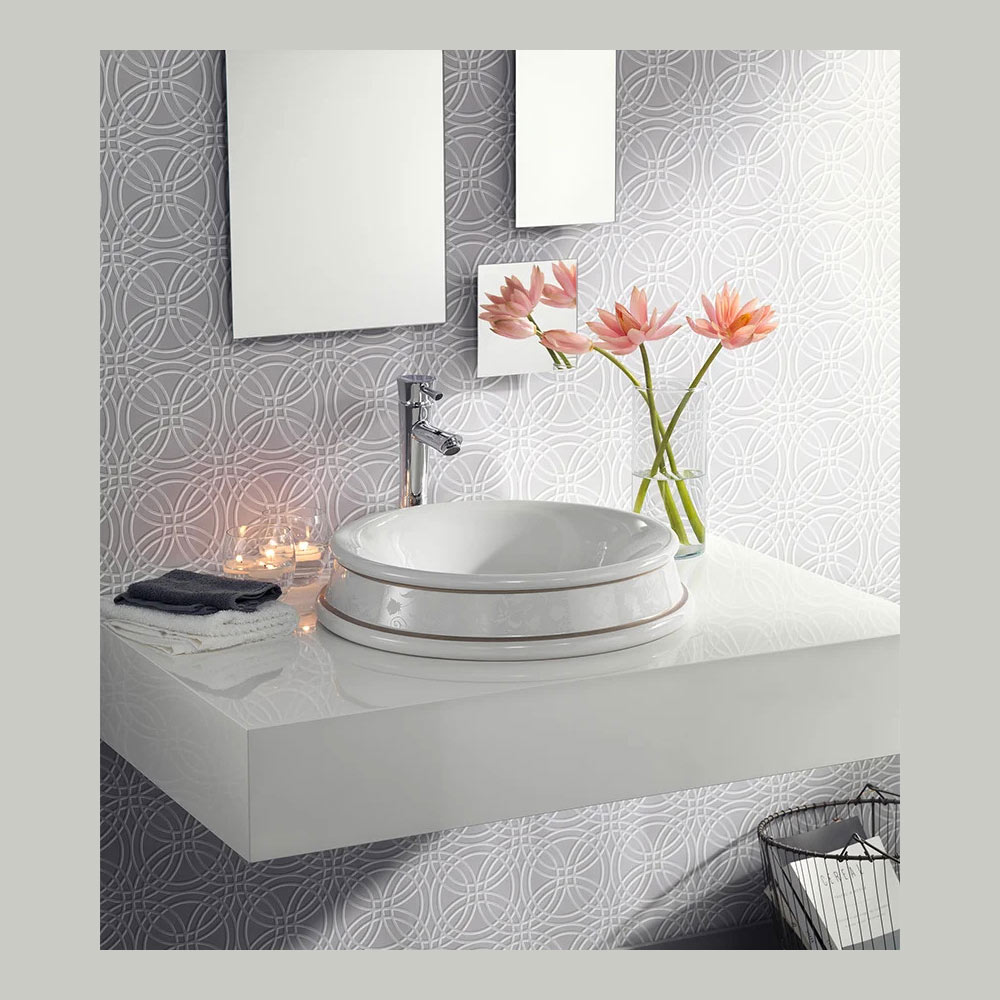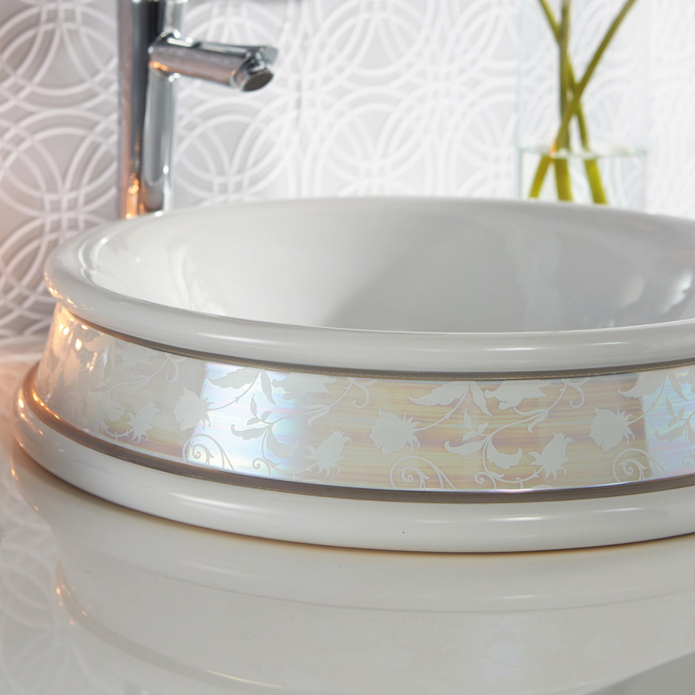 حوض حمام نصف غائر مصنوع من طين النار مع دانتيل مطرز من نوع تون سور تون ، صنع بالكامل في إيطاليا. صُمم شكل هذا المنتج وتشطيبه ليُزيّن الحمام بأثاث أنيق وملفت، فريد من نوعه. ولم يُغفل الجودة والأداء الوظيفي المميزين للمنتجات المصنوعة في إيطاليا، باختيار أجود المواد وإسناد الإنتاج إلى حرفيين إيطاليين خبراء.