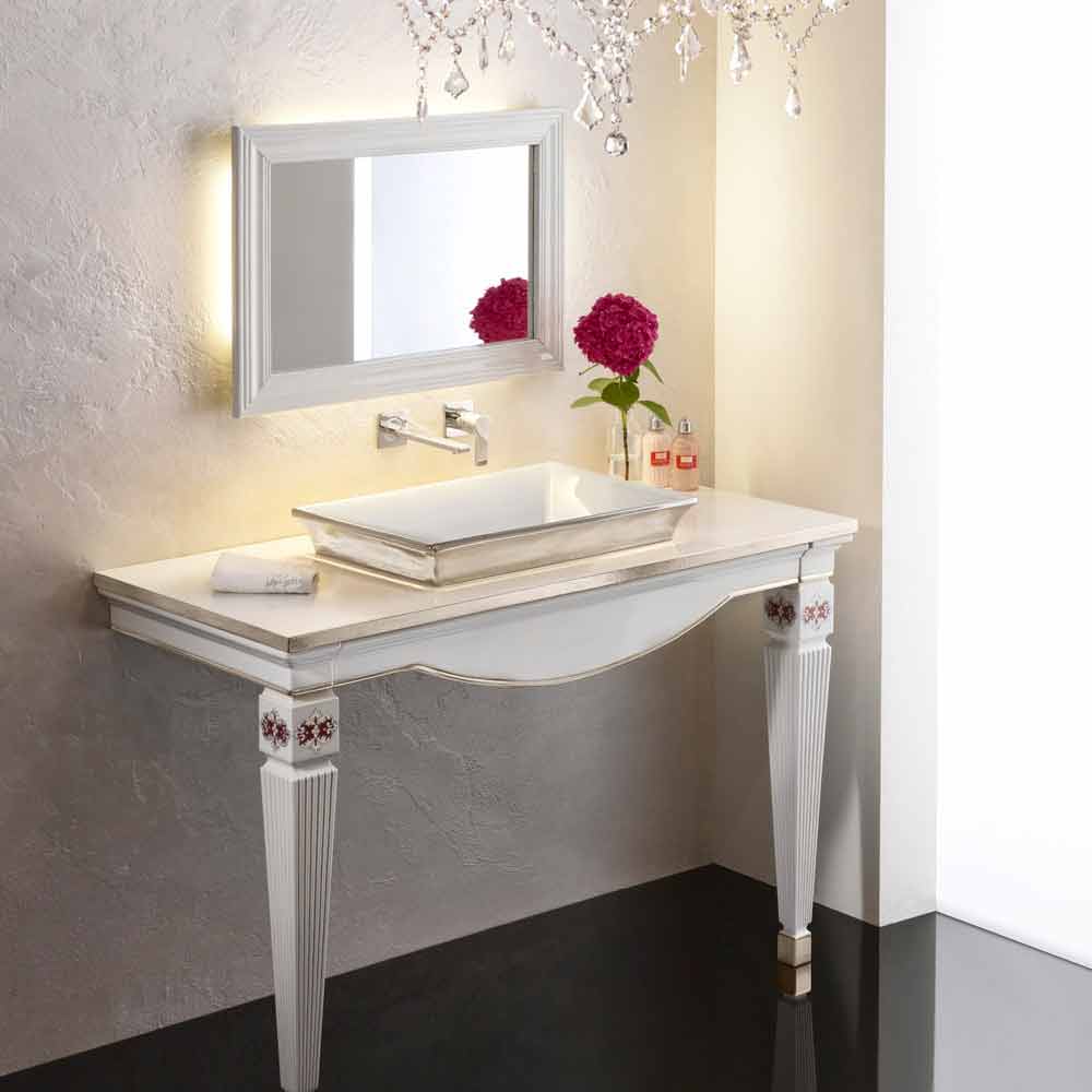حوض غسيل شبه غائر بتصميم حديث من الطين الناري، صنع في إيطاليا، جويدو حوض حمام نصف غائر مصنوع يدويًا في إيطاليا من طين النار مع جزء داخلي أبيض لامع وخارجي مطلي بالبلاتين.
