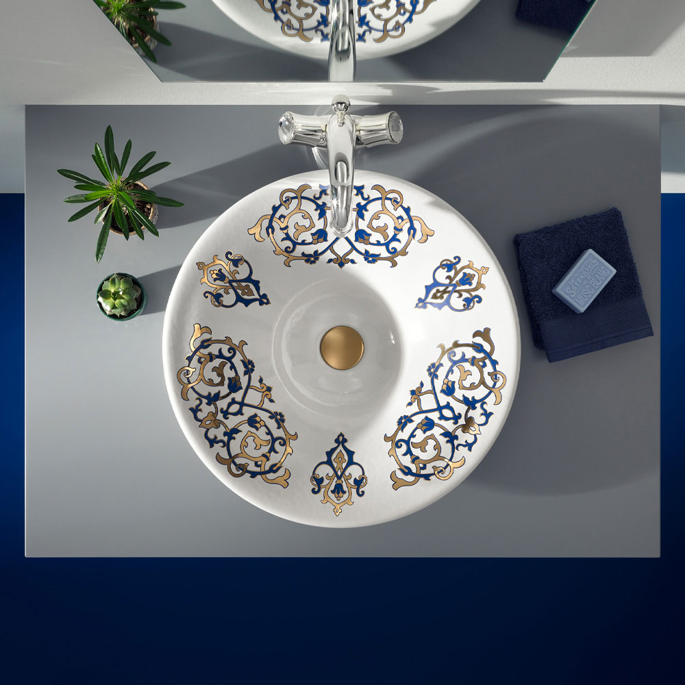 حوض حمام نصف غائر مصنوع من الطين الناري، باللون الأبيض ، صنع بالكامل في إيطاليا. حوض أنيق وراقي يضفي لمسة فريدة وراقية على الحمام. إنه عنصر يُكمل الأثاث، ويوفر وظائف عملية بفضل المواد المختارة والاهتمام الذي أولاه الخبراء الإيطاليون في هذا المجال في كل لحظة من مراحل صنعه.