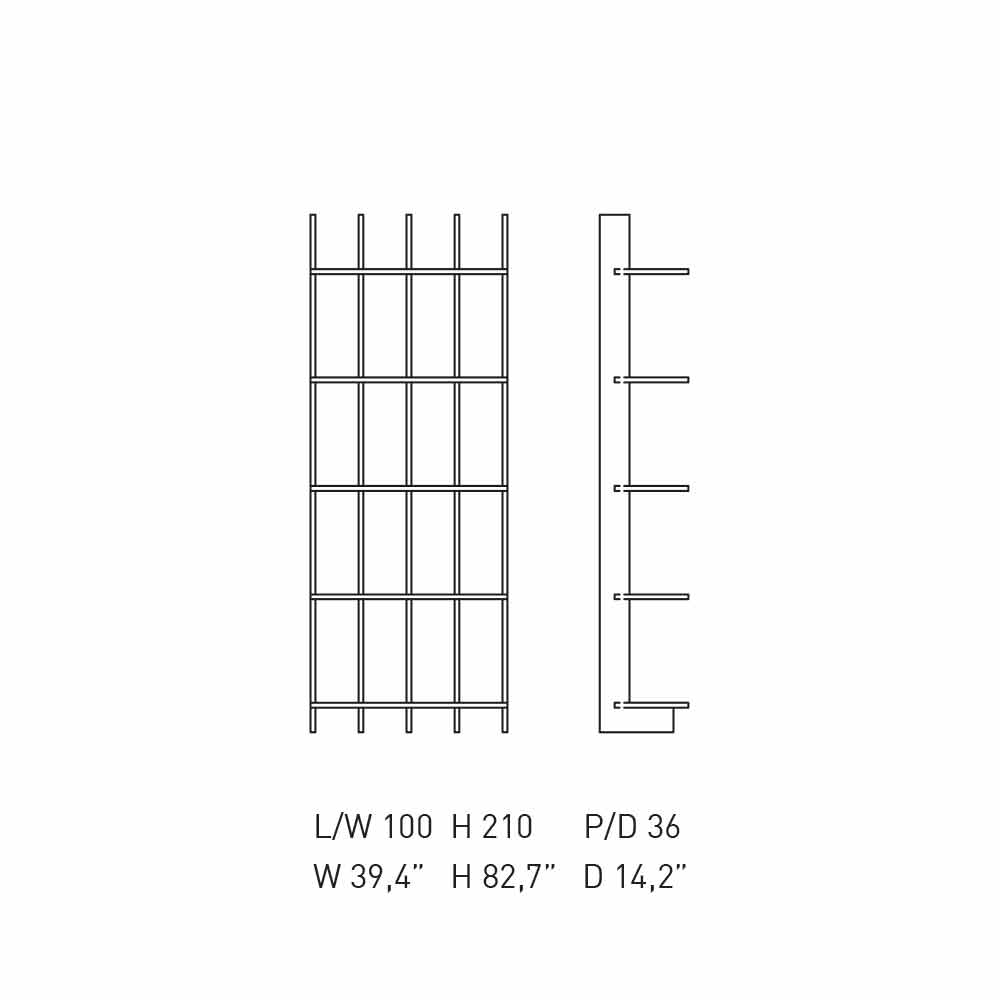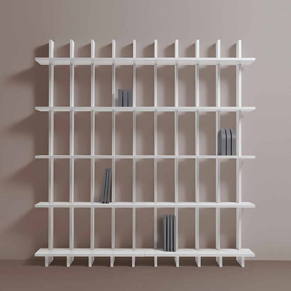 مكتبة حائط من خشب الدردار ذو المسام المفتوحة بتصميم أنيق بسيط بألوان مختلفة، صنعت في إيطاليا.