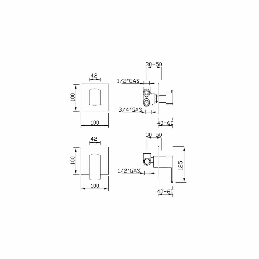 خلاط دش مدمج مع محول بخمسة اتجاهات كامل مع جزء مدمج وأجزاء خارجية. تم تصنيعها بالكامل في إيطاليا من النحاس بمواد خام عالية الجودة، متوافقة مع المعايير الأوروبية.