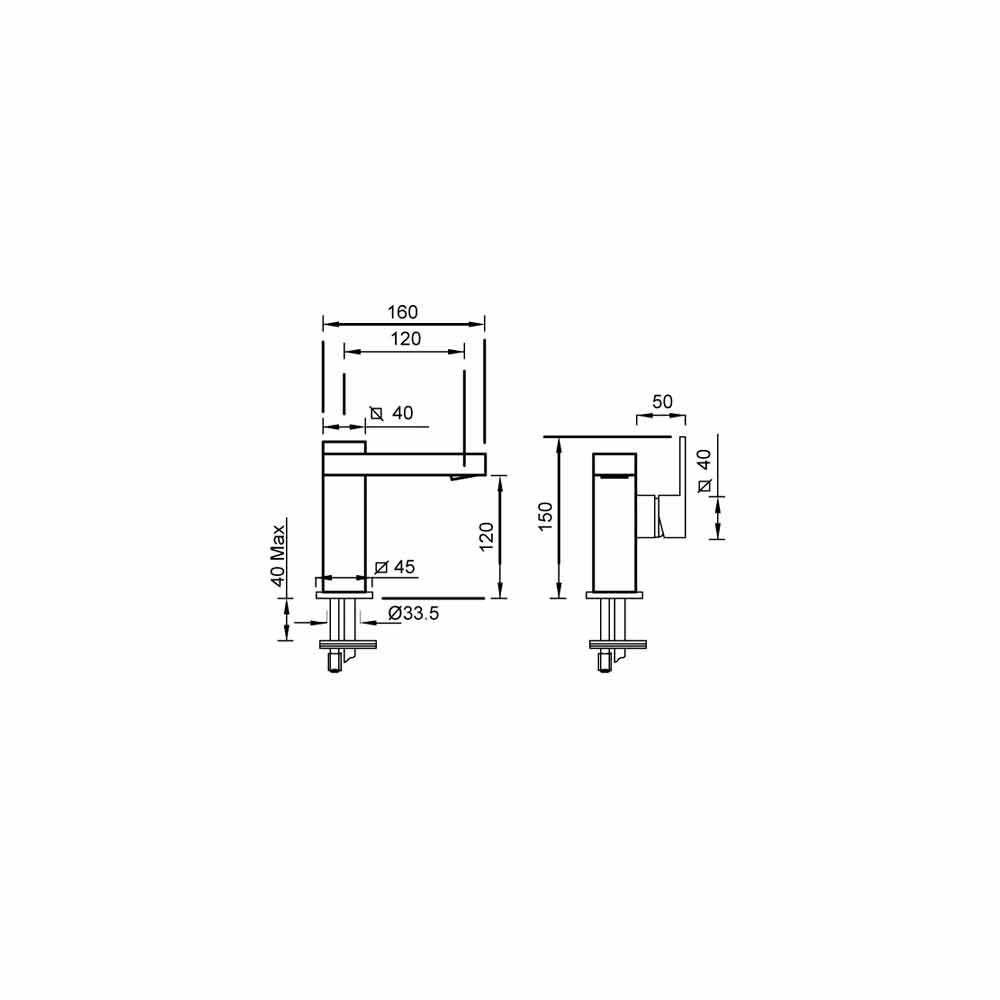 خلاط حوض مع رافعة جانبية، بدون نفايات، مع خراطيم بغطاء أنثوي 3/8 ومجموعة تثبيت. تم تصميمه وإنتاجه حصريًا في إيطاليا من النحاس ؛ المواد المستخدمة عالية الجودة وتتوافق مع المعايير الأوروبية.