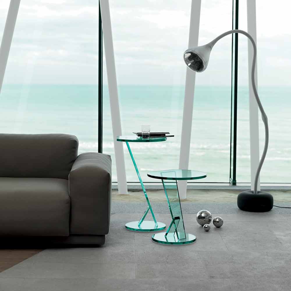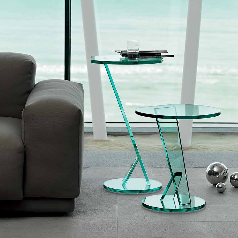 طاولة جانبية للأريكة مصنوعة من زجاج شفاف للغاية بارتفاعين،عالية الجودة، مصنوعة في إيطاليا.