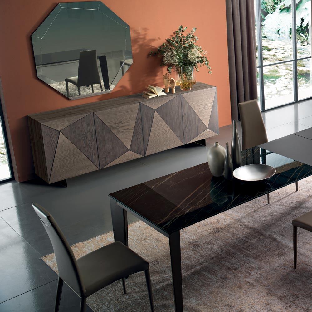 خزانة جانبية لغرفة المعيشة مصنوعة من خشب الدردار بلمسة نهائية من خشب البلوط المعقود، ومجهزة بثلاثة أو أربعة أبواب مطلية يدويًا بنظام فتح وسحب، تحتوي على أرفف زجاجيةشفافة مقسّاة (سمكها ٦ مم، تحمل أقصى وزن ٢٠ كجم) وأقدام خطية. قطعة أثاث أنيقة بتصميمها المهيب والراقي ، مثالية لمن يحبون إثراء منازلهم بطريقة عملية وأنيقة ومتطورة. تتميز بجمالها الفريد بفضل دقة الصنع التي تغطي الأبواب المطلية يدويًا بخبرة، مما يزيد من جودة المنتج وقيمته. كما أن إنتاجها الإيطالي ١٠٠٪ واستخدام مواد خام عالية الجودة يمنح الخزانة الجانبية صلابةومقاومةومتانة ممتازة على مر الزمن لتحقيق أفضل النتائج.