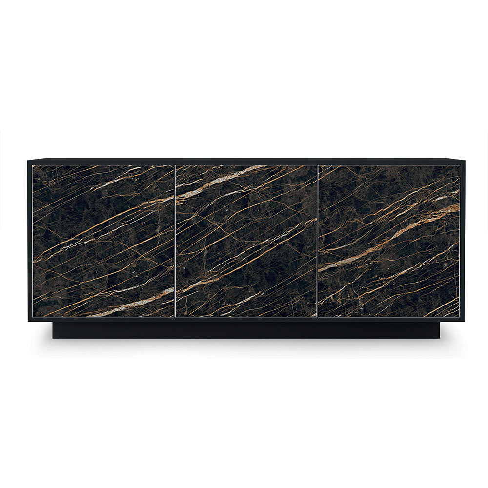 خزانة جانبية لغرفة المعيشة، مصنوعة بالكامل في إيطاليا ، بهيكل وقاعدة من الخشب المطلي بالورنيش غير اللامع ، وبابين أو ثلاثة أبواب من الألومنيوم ، وواجهات من سيراميك لامينام، مزودة بنظام فتح بالدفع والسحب ، ورفوف داخلية من الزجاج المقسّى الشفاف (سمك 6 مم، سعة قصوى 20 كجم). تصميم فخم وفخم، يُضفي لمسةً من الأناقة والرقي على كل غرفة في المنزل. ينبع جمالها من الجمع بين العملية والأناقة، ليُضفي لمسةً عصريةًوتأثيرًا بصريًا قويًا ، وهو مثالي لعشاق الأثاث الراقي والمتطور .