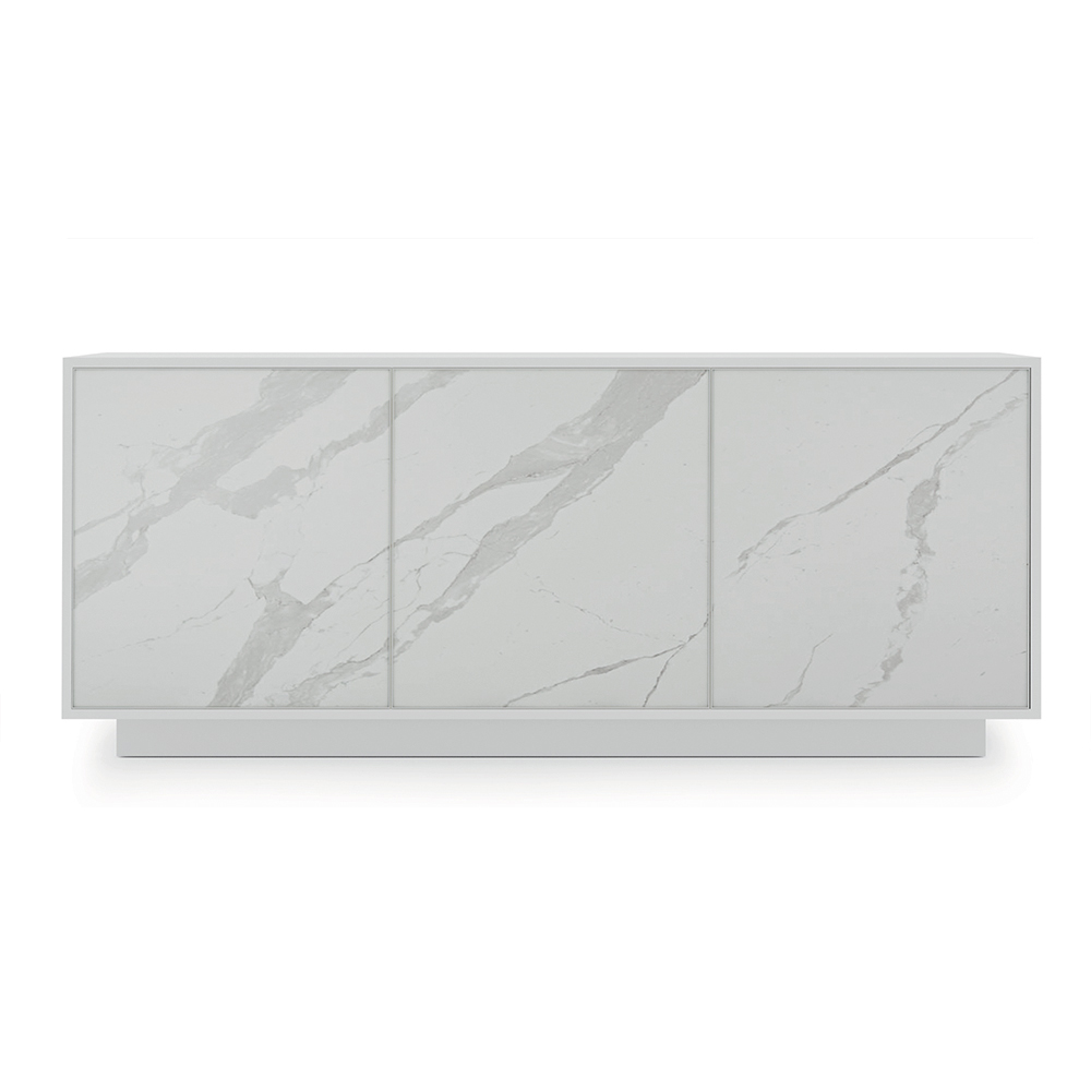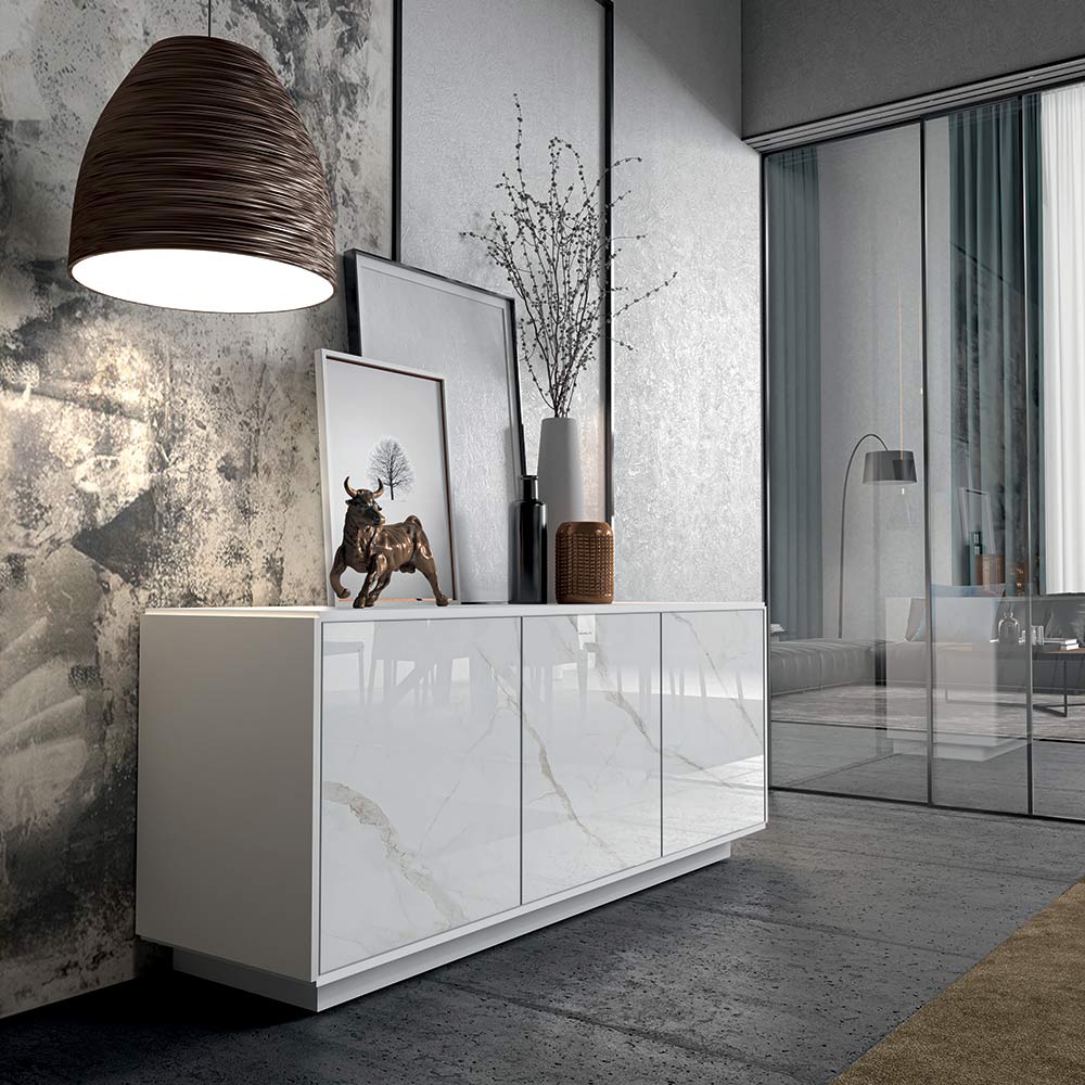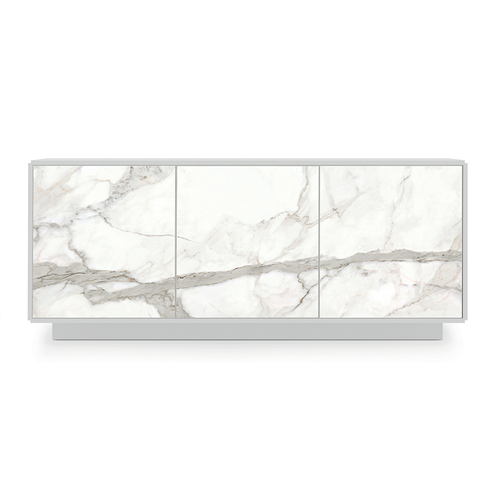 خزانة جانبية لغرفة المعيشة مصنوعة من الخشب المطلي بأبواب سيراميك، عالية الجودة صنع في إيطاليا.
