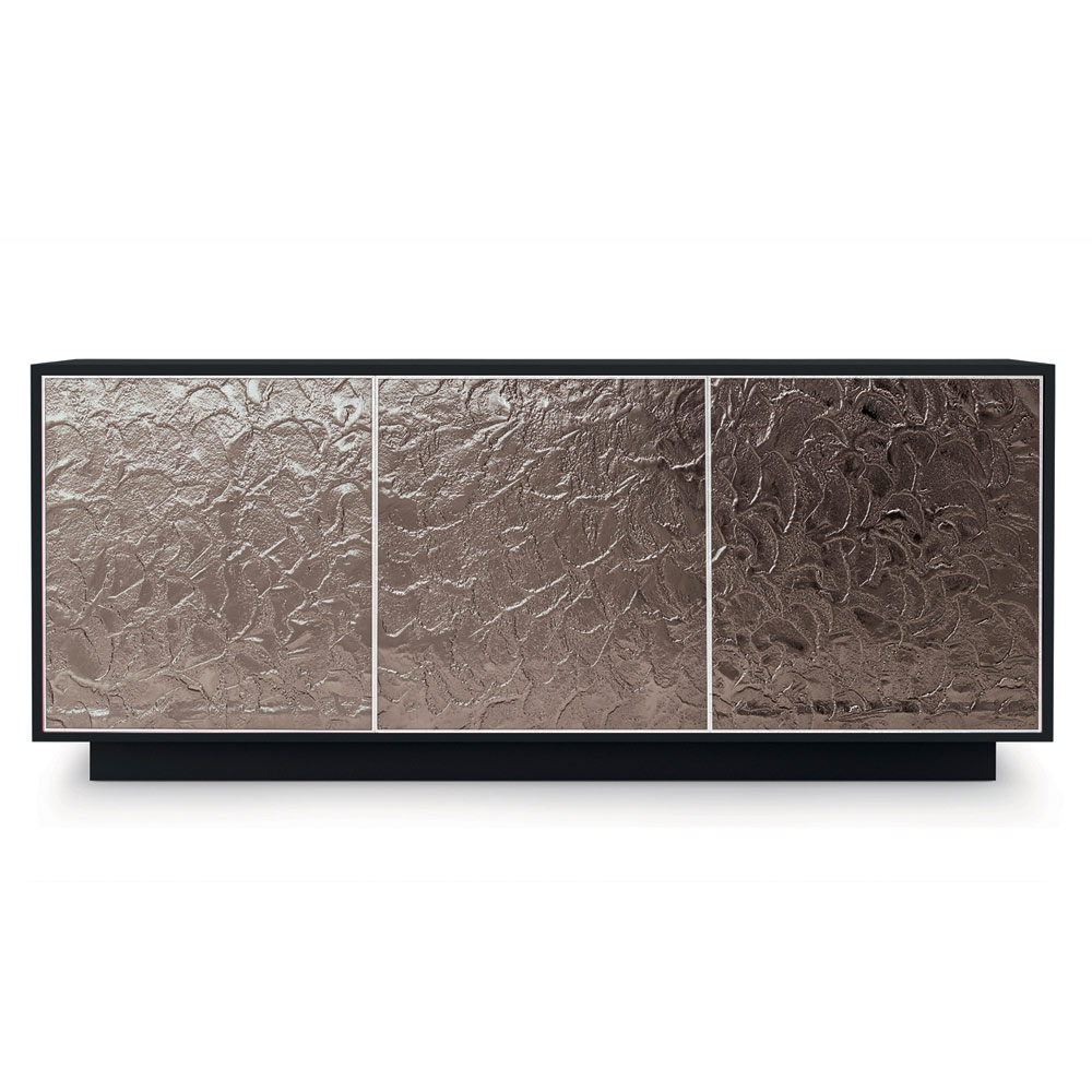 خزانة جانبية لغرفة المعيشةمصنوعة بالكامل في إيطاليا مع هيكل قاعدة وقاعدة من الخشب المطلي باللون الأسود غير اللامع ، بابان أو ثلاثة أبواب من الألومنيومبواجهات زجاجية مصنعة ، مزودة بنظام فتح بالدفع والسحب ، ورفوف داخلية من الزجاج المقسّى الشفاف (سمك 6 مم، أقصى حمولة 20 كجم). ينبع جمالها من الرغبة في الجمع بين العملية والأناقة ، لنتيجة عصرية ذات طابع مميزوتأثير سينوغرافي قوي ، مثالية لعشاق الأثاث الراقي والمتطور . يُضفي المزيج المثالي بين أناقة الزجاج الخالدة وإتقان صنعته، مع لمسة الخشب المهيبة، لمسةً مميزةً بتصميم فاخر يُضفي لمسةً من الأناقة الحصرية على كل غرفة في المنزل.